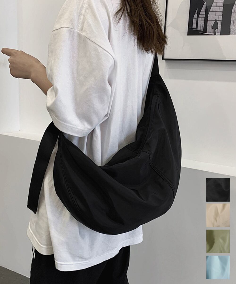 丸みを帯びたデザインが身体にフィットし、肩掛け・斜め掛けの両方に対応。