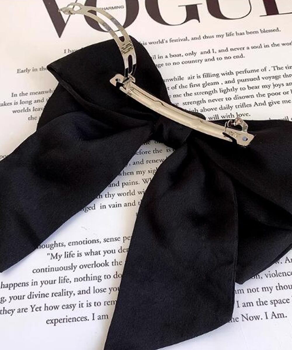 ヘアアクセ 韓国風 リボンバレッタ簡単 蝶結びクリップ 黒