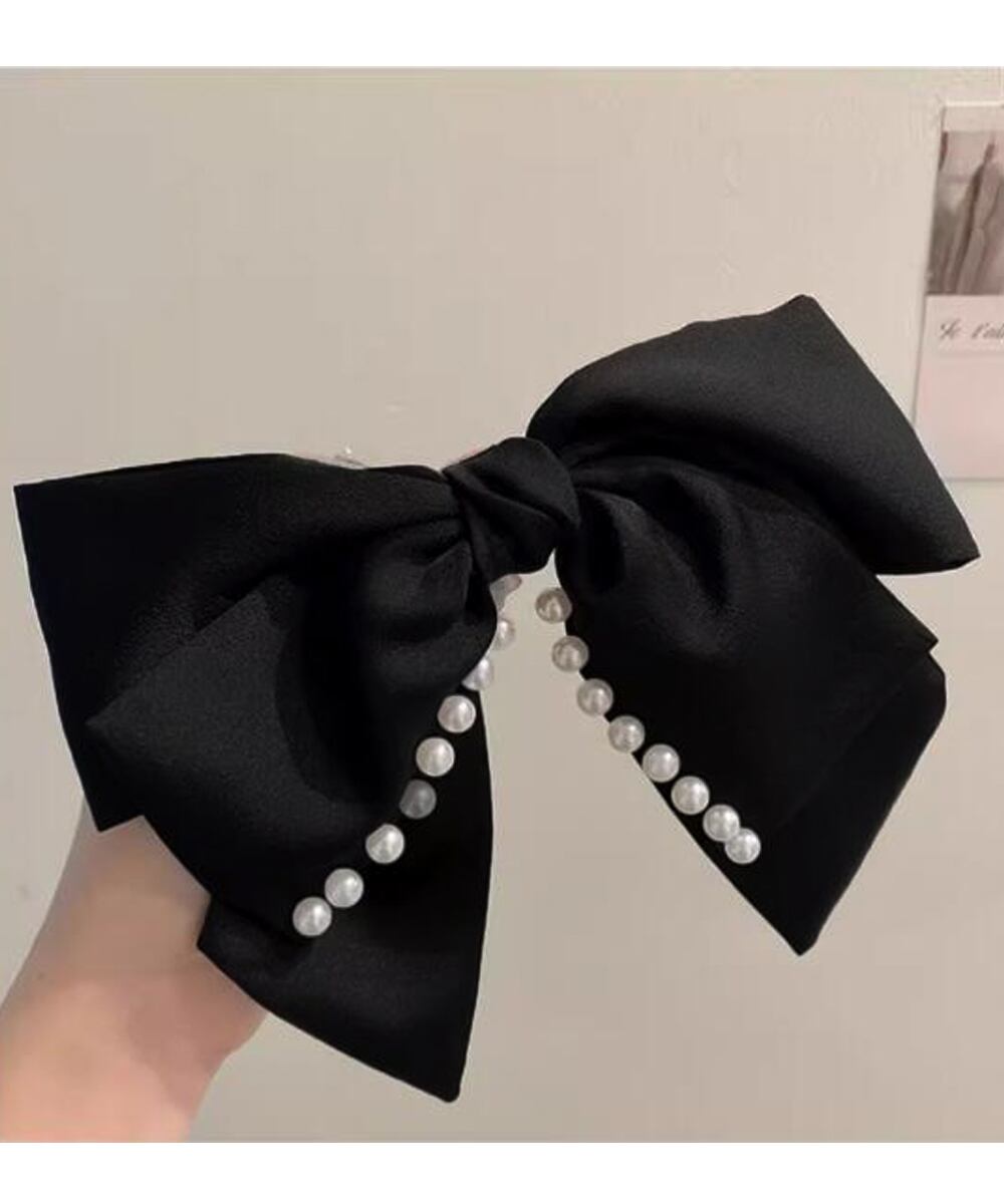 エレガントな大きめリボンに上品なフェイクパールをあしらったヘアクリップ。