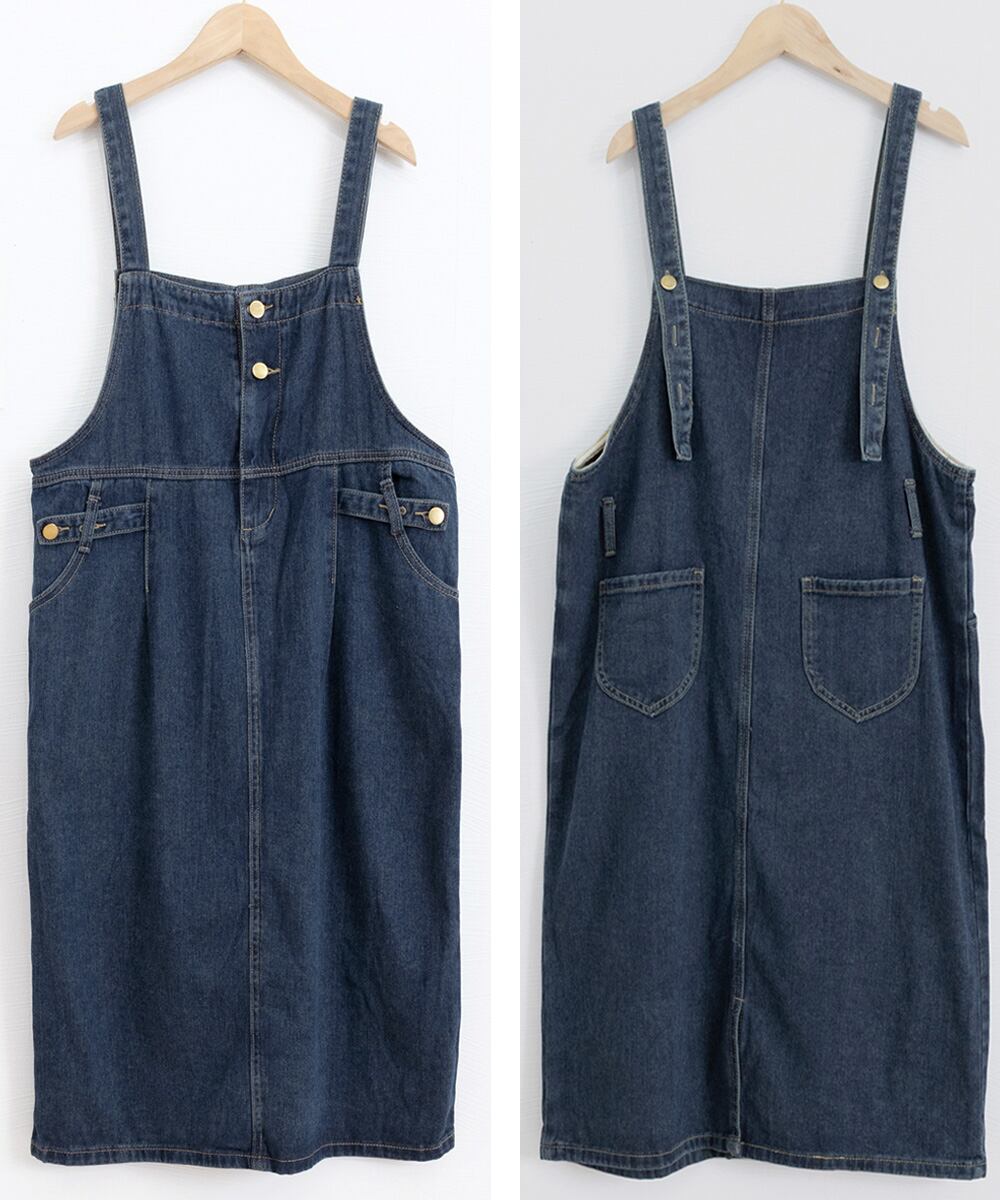 ゆったりとしたシルエットで、気になる体型を自然にカバーしてくれるデニムジャンパースカート。