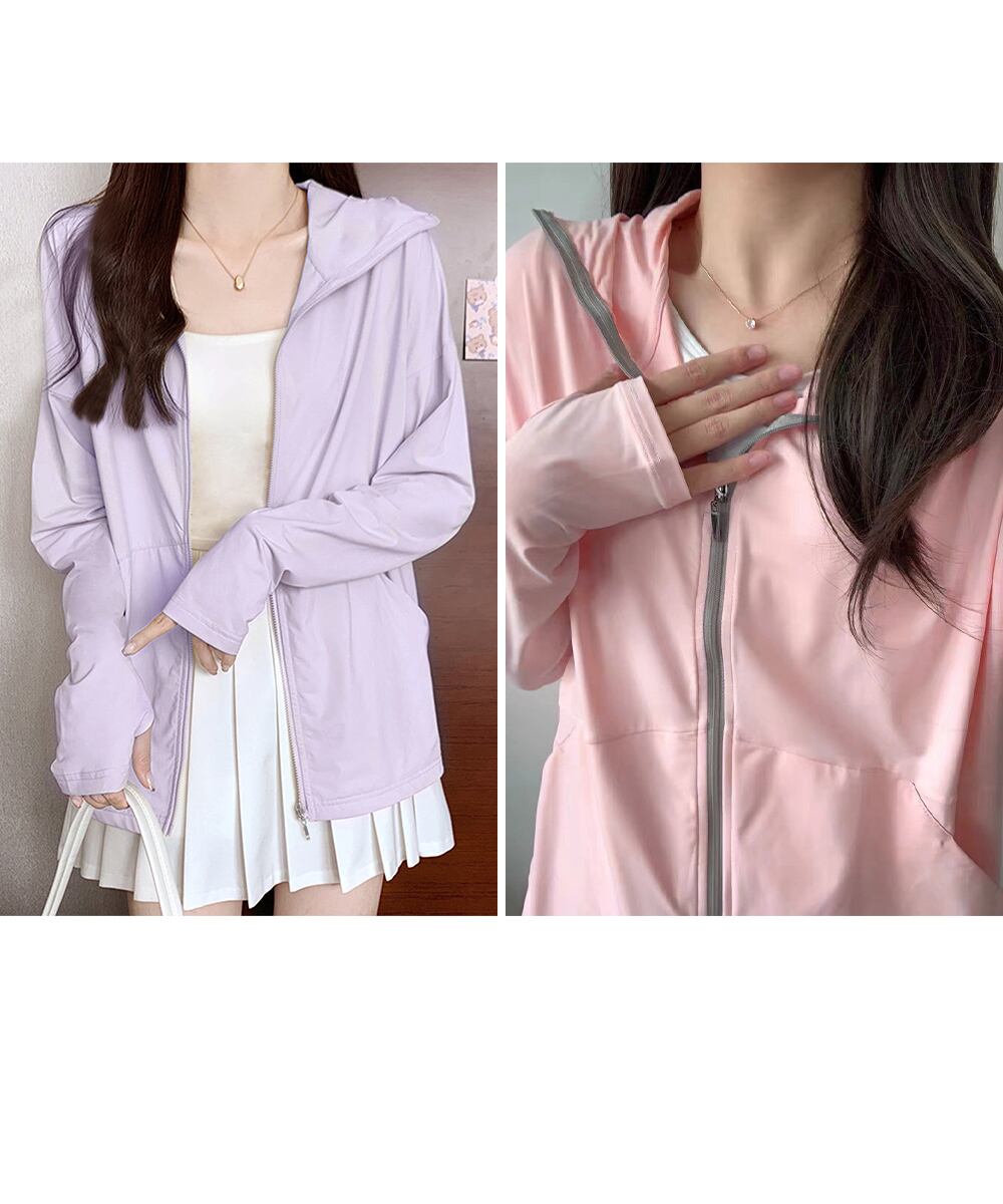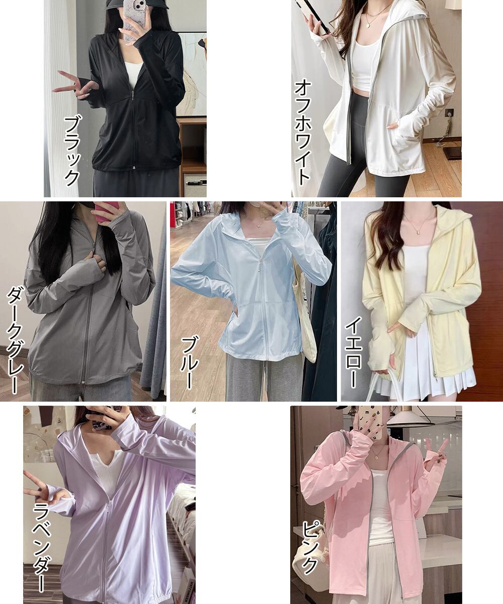 フード付き 指穴付きアウター 涼しい オーバーサイズ ジップアップトップス 紫外線対策羽織り 日焼け止めラッシュパーカー