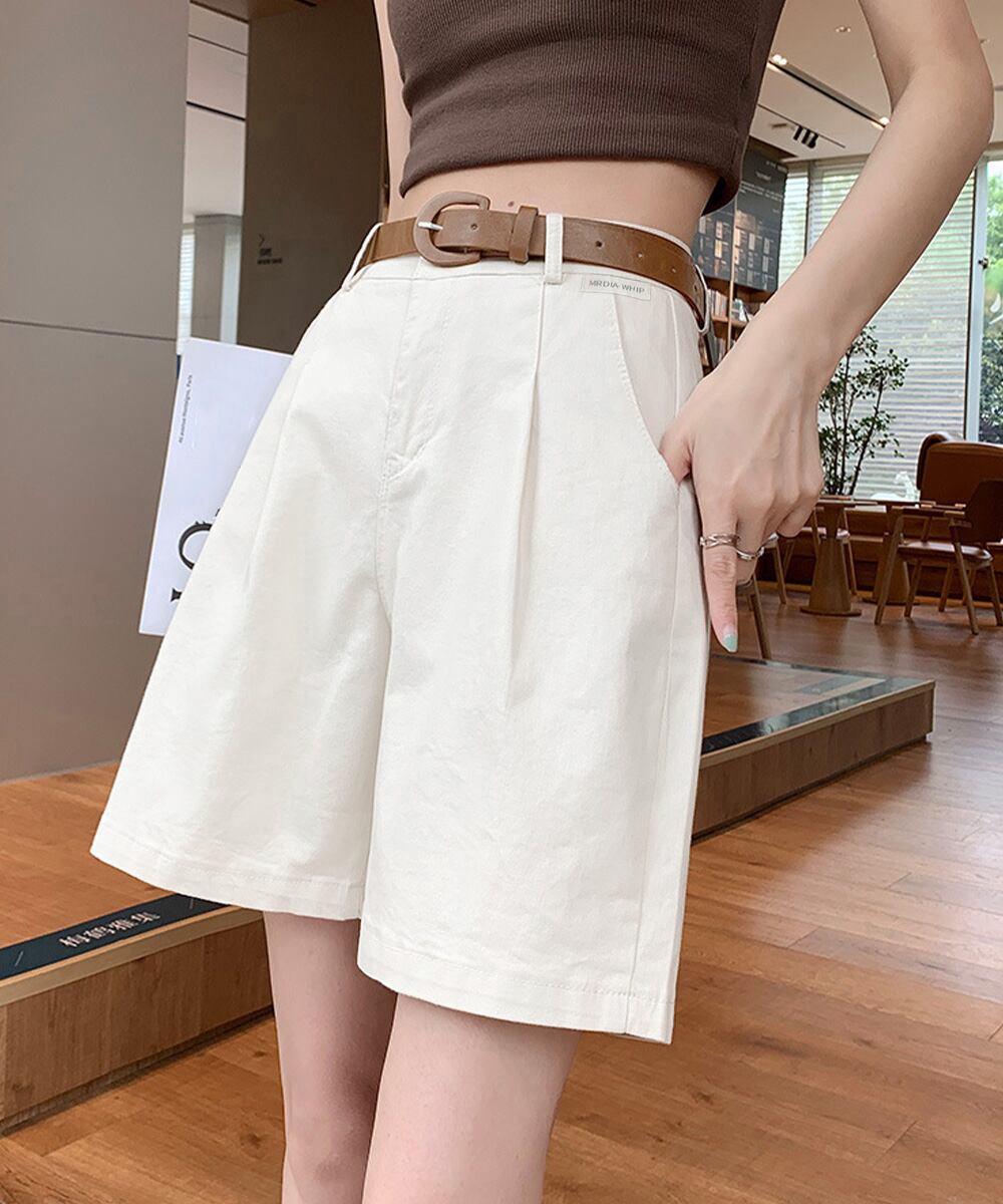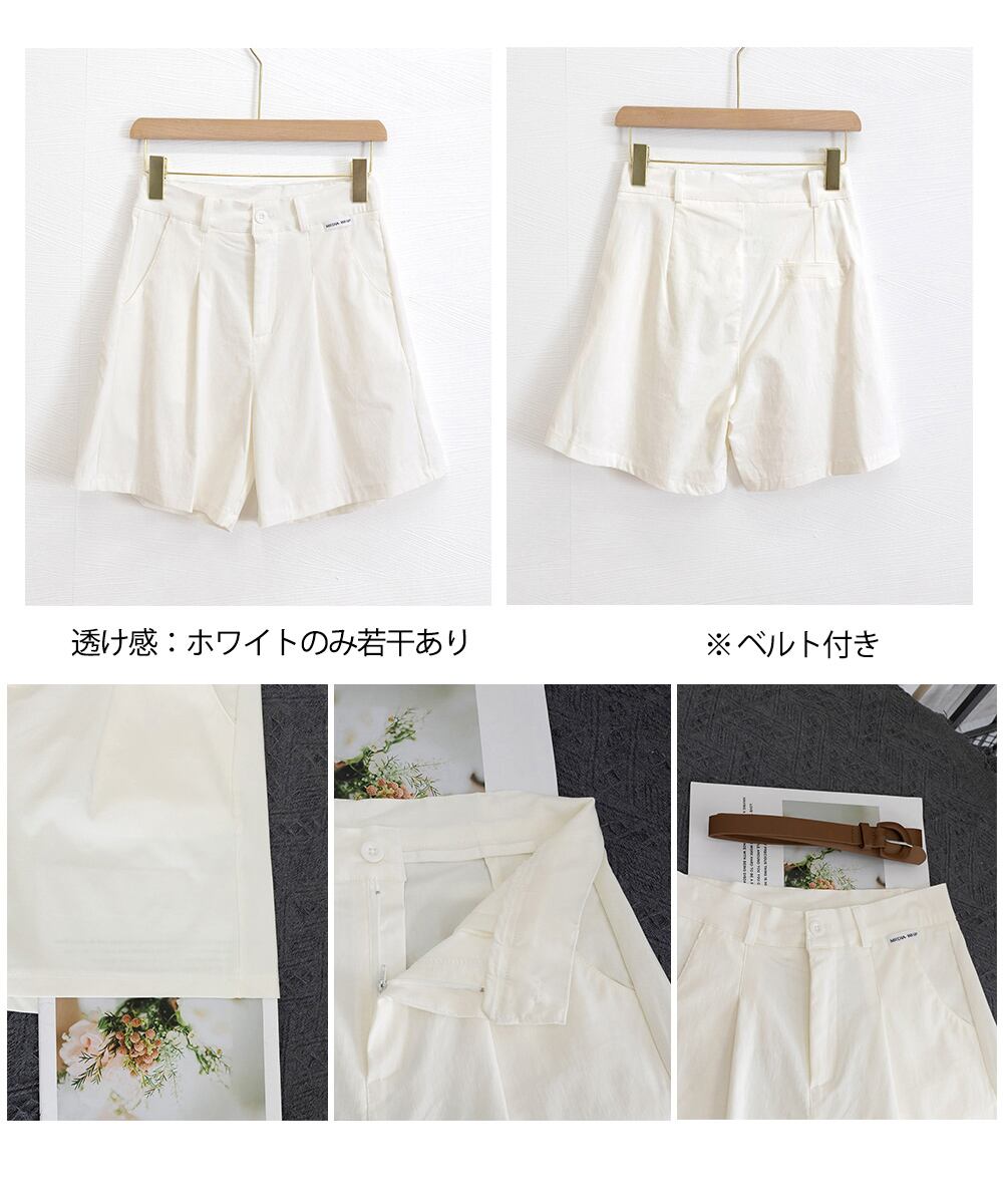 ベルト付きでコーデのアクセントになる、ハイウエストのタックショートパンツ。