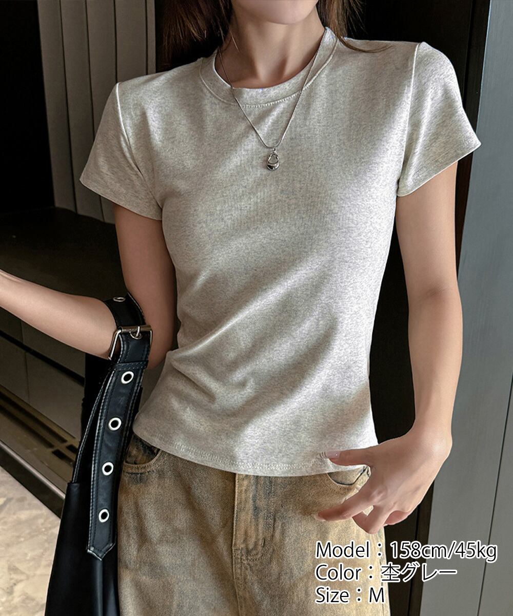 レディース クルーネックtシャツ  細見え夏服 ストレッチトップス シンプル 着回し タイトtシャツ 半袖カットソー無地