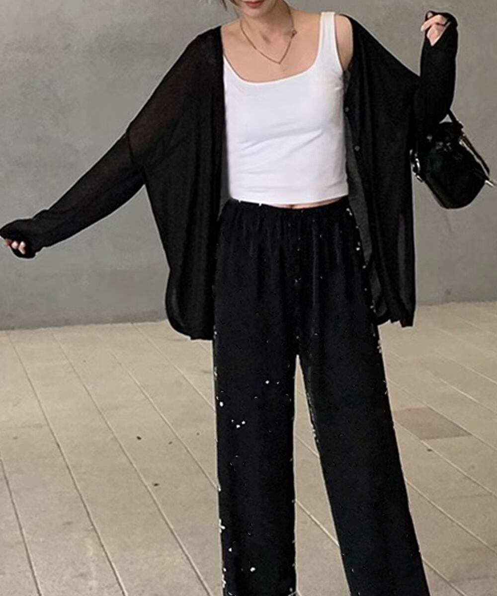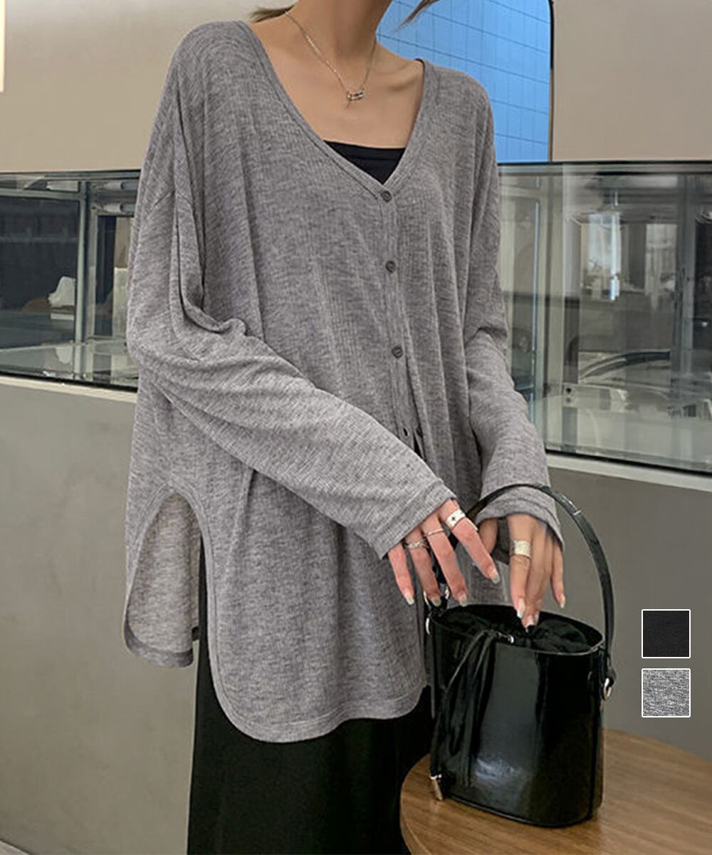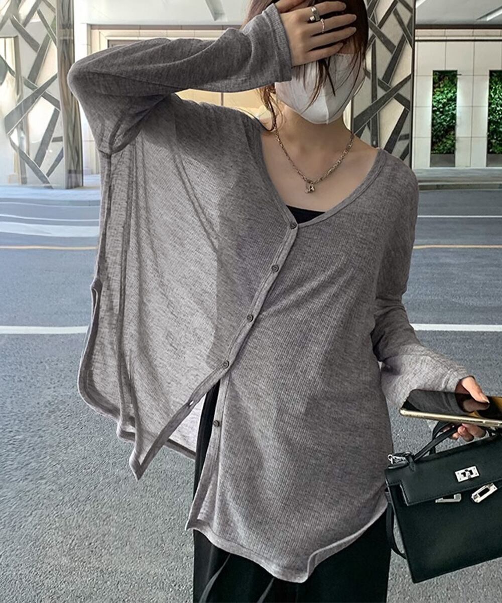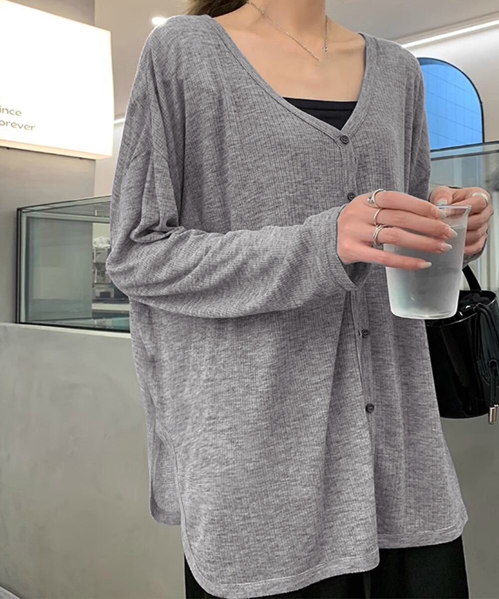 サイドスリット 薄手UVカーディガン 長袖ゆったり 紫外線対策 冷房対策上着 涼しい韓国風シアートップス 着やせ 前開き