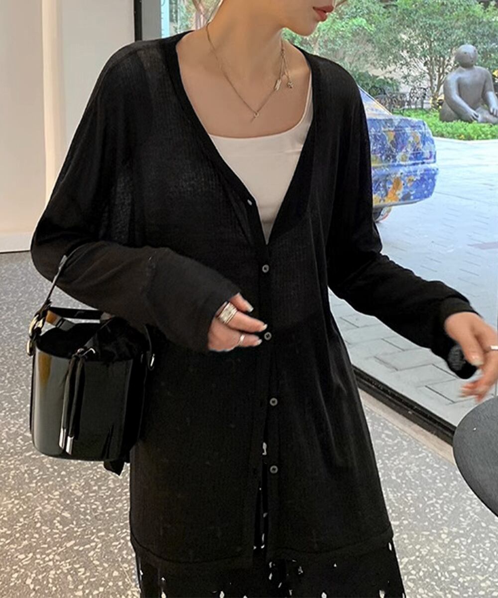 おしゃれ体型カバー 日焼け対策トップス ミディアム丈カーデ