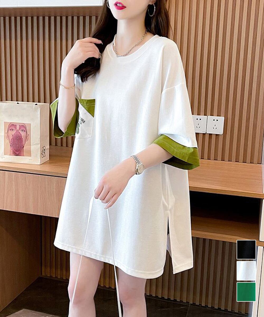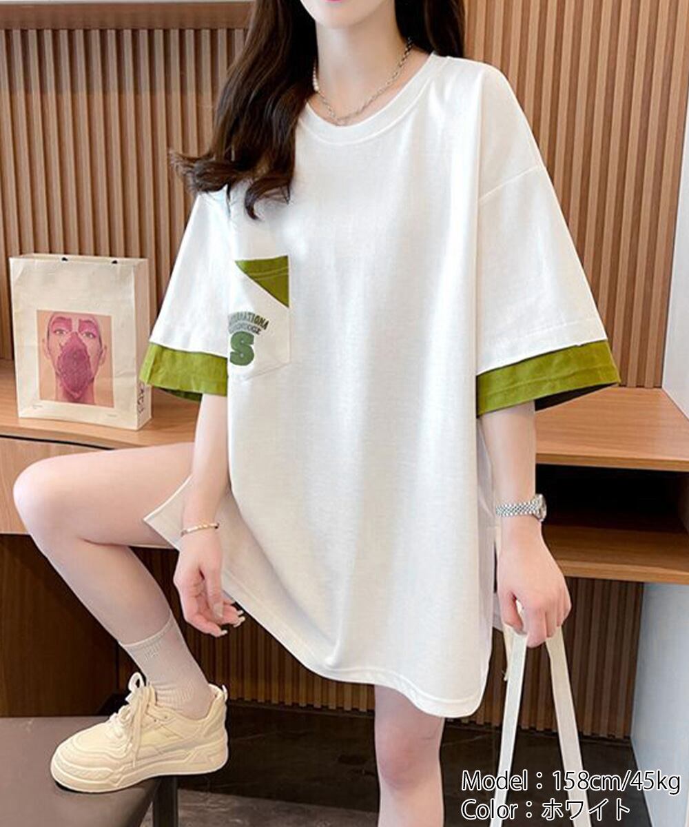 ゆるTシャツ着やせ 二の腕カバー 夏服 ルーズTスリット入