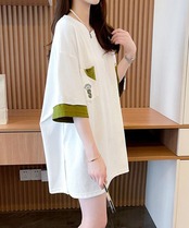 韓国風半袖Tシャツ クルーネックカットソー ゆったりプルオーバー 楽ちん体型カバーTシャツワンピースロゴ 大人カジュアル