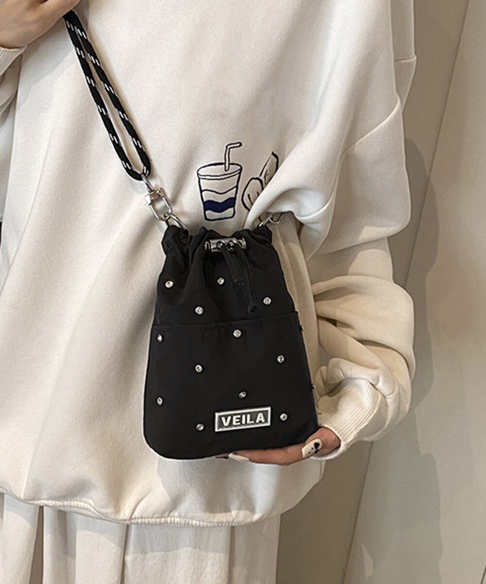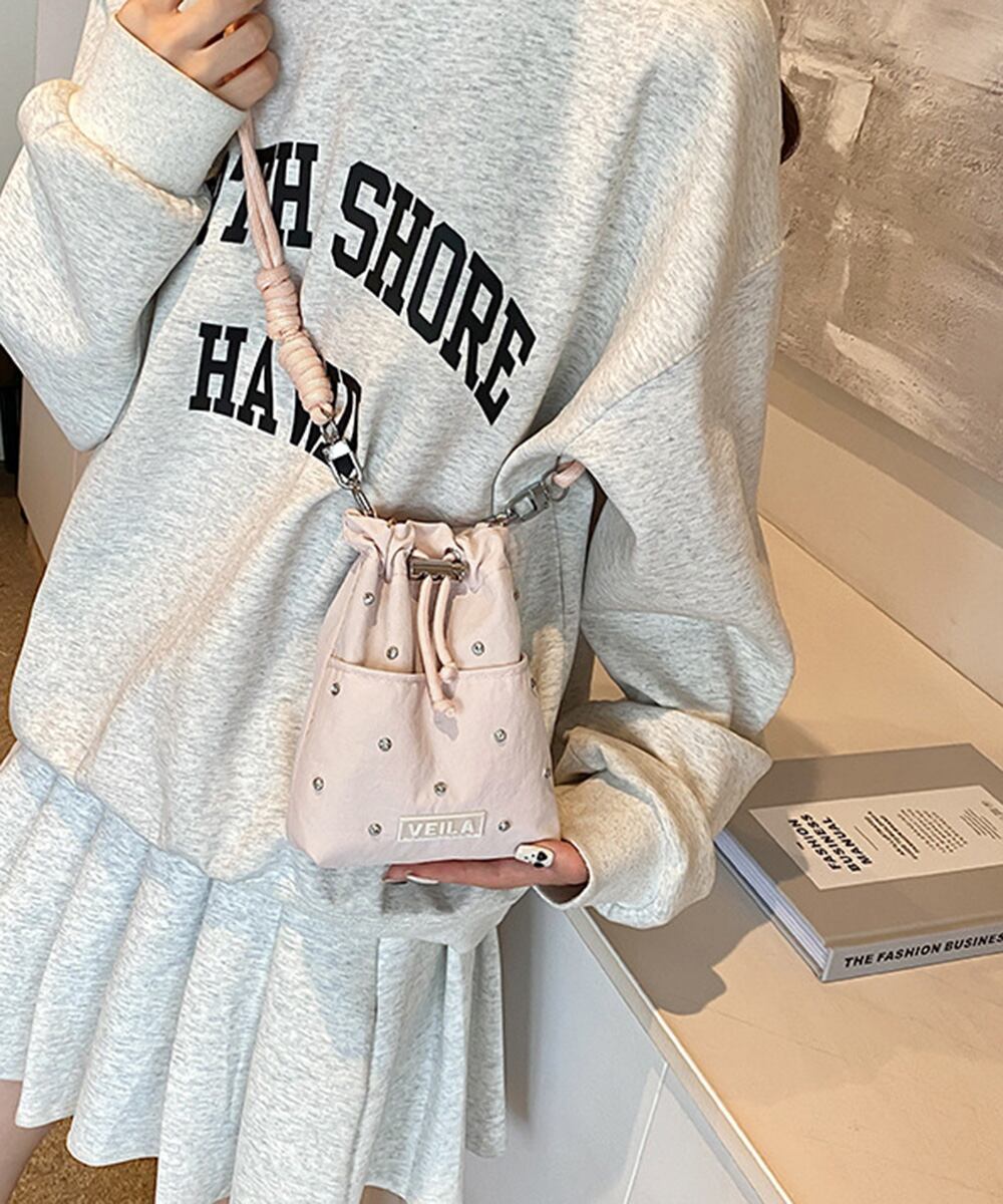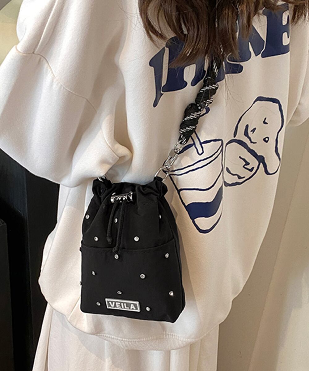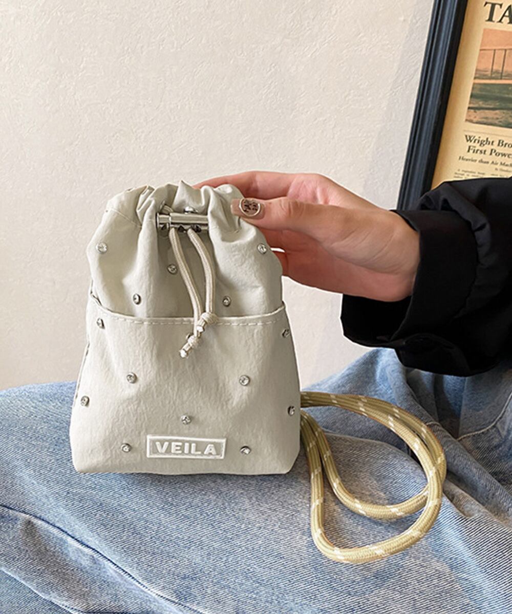 トレンド感のある巾着デザインのナイロンミニショルダーバッグ。