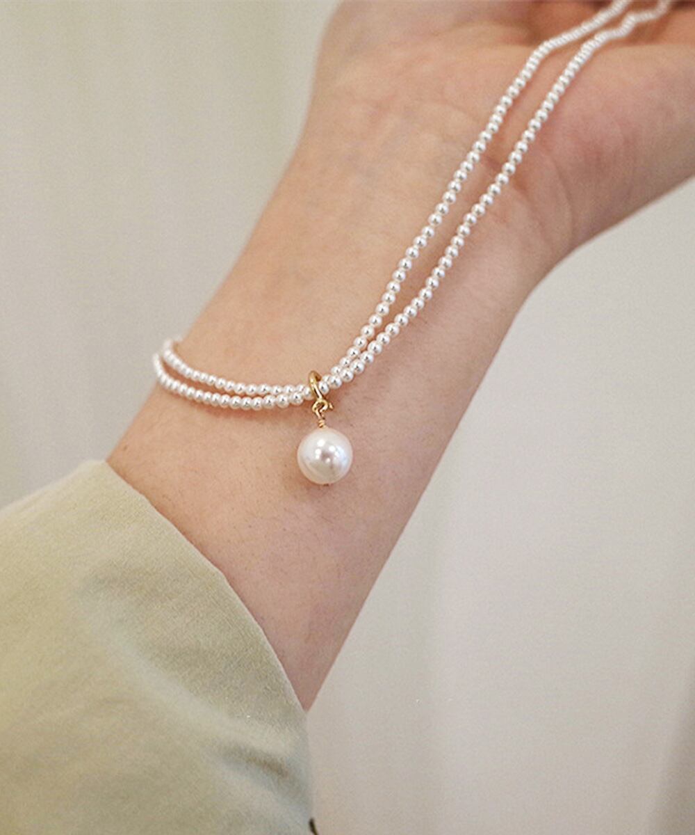 華やかさと上品さを兼ね備えた、2WAY仕様の2連パールネックレス。