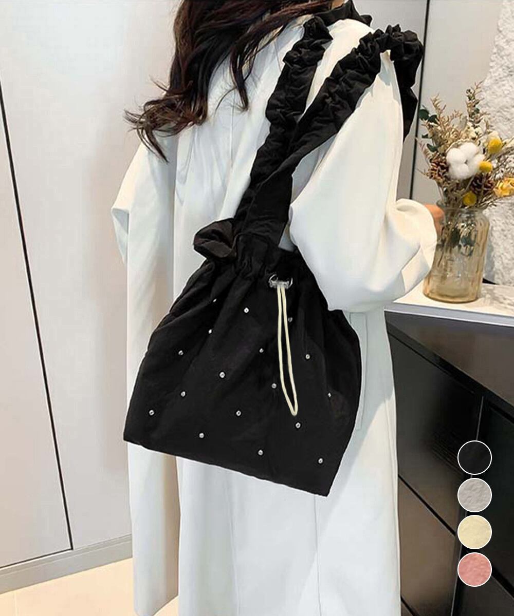 シャーリングショルダー 巾着バッグ キラキラbag ラインストーン付きバッグ 通勤通学肩掛けバッグ オルチャン鞄 可愛い