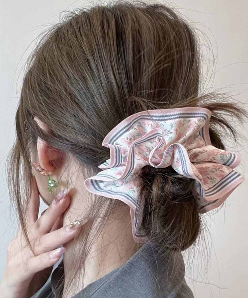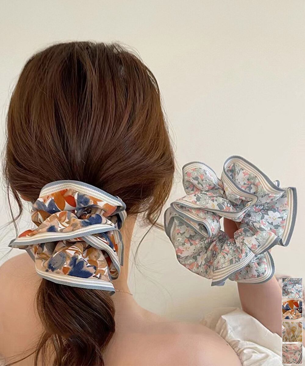 ヘアゴム跡つかない 花柄髪留め 女子会 大人っぽいシュシュ