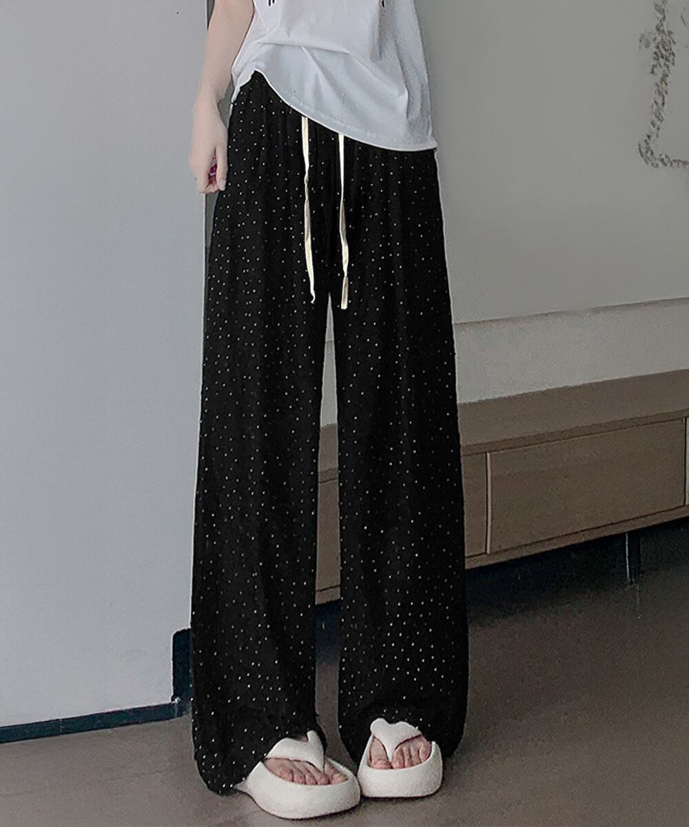 レディース ウエストゴム ストレートパンツ ラインストーン 韓国風 着やせイージーパンツ脚長 バタフライパンツ ゆったり
