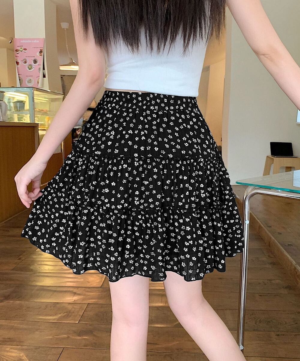 小花柄がフェミニンな印象を与えるミニ丈のティアードスカート。