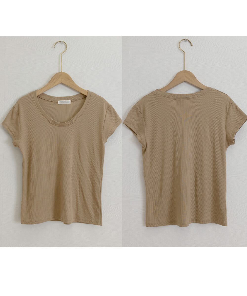 ベーシック リブtシャツ サマーカットソー  無地 着回し夏t 大人カジュアル 快適プルオーバー 涼しげトップス柔らかな