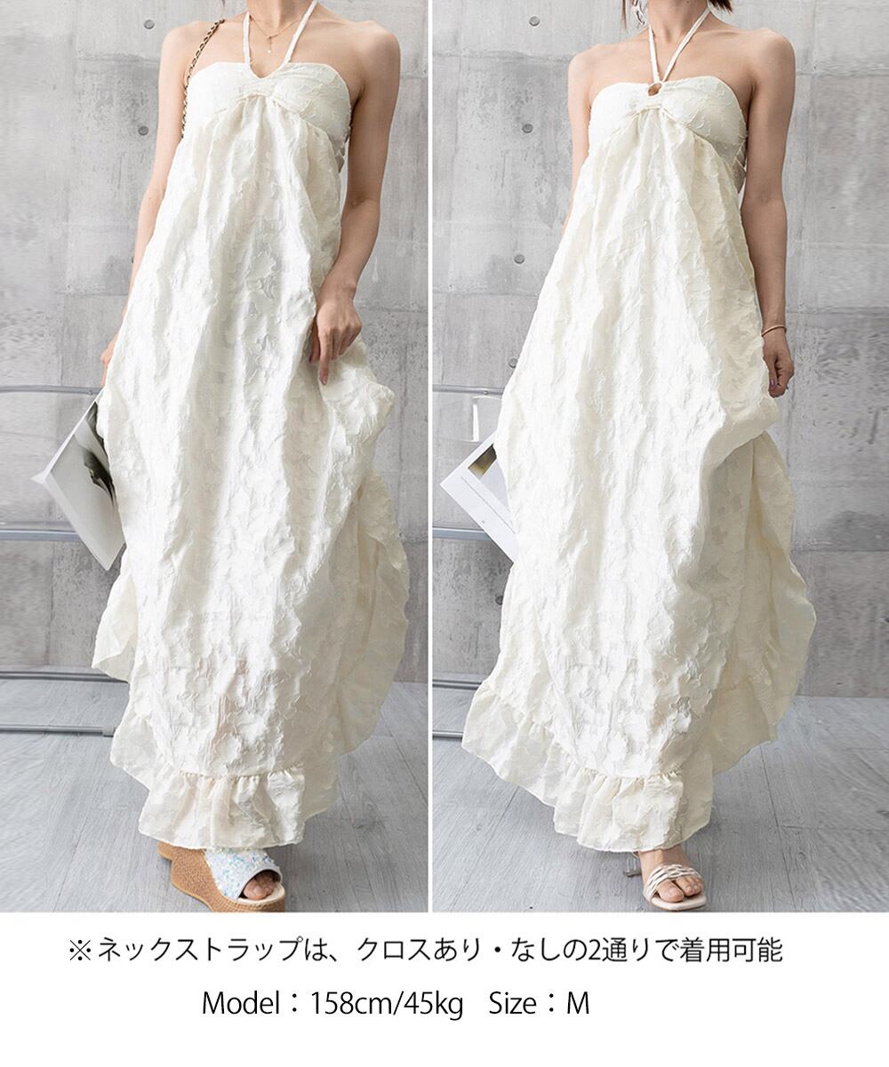華やかで繊細なフラワー刺繍が目を惹くホルターネックリゾートワンピース。