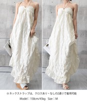 [L]着丈(ストラップを含まない):約115cm 裏地丈:約95cm 身幅:約37cm 胸囲(バックゴム仕様):約74-100cm ウエスト(バックゴム仕様):約80-100cm ヒップ:約114cm