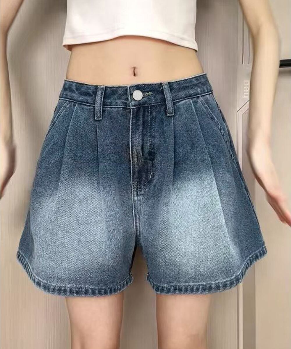 ウォッシュデニムキュロットパンツ レディース きれいめ Aラインデニム短パン大人可愛い おしゃれショートジーンズ美脚美尻