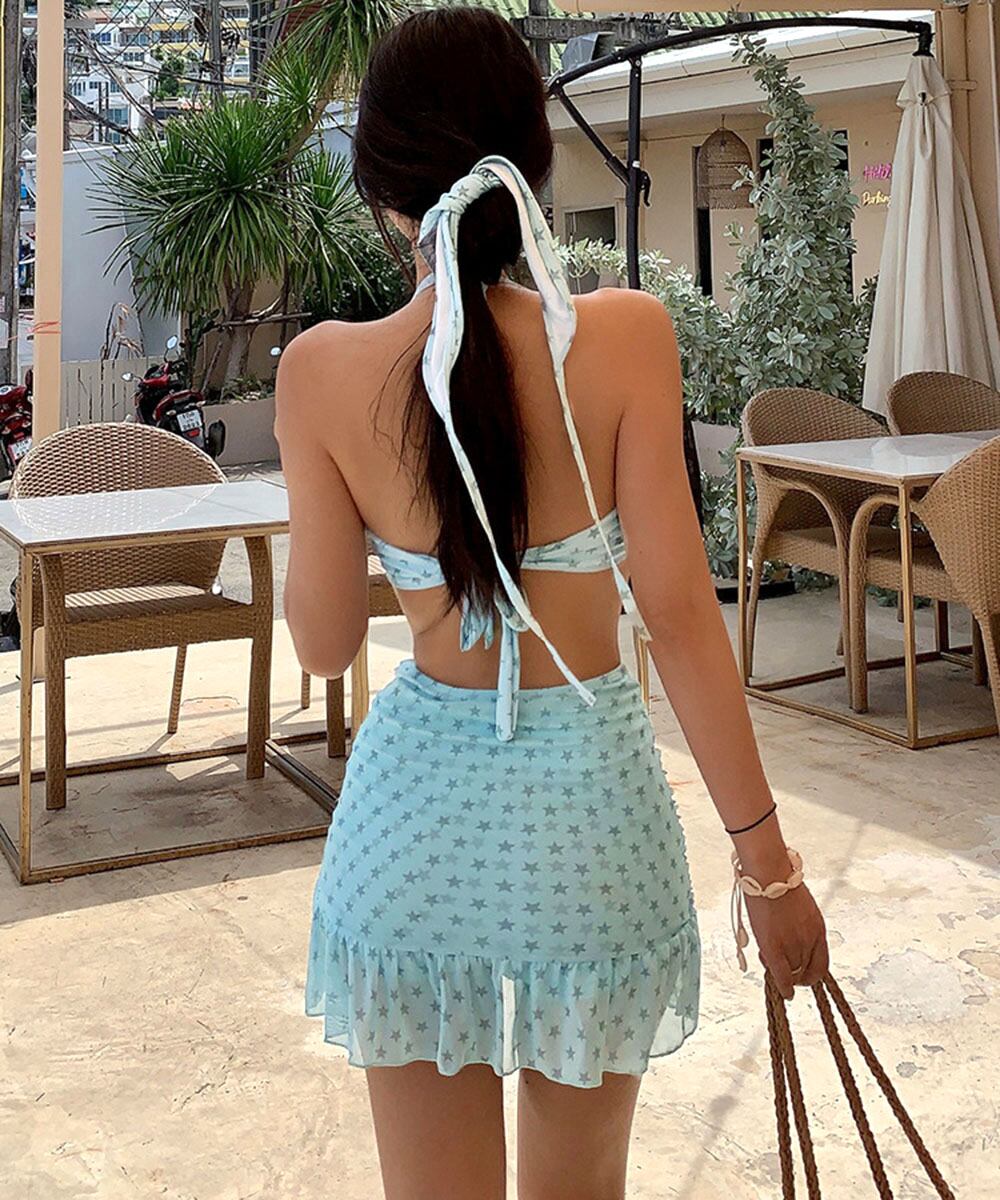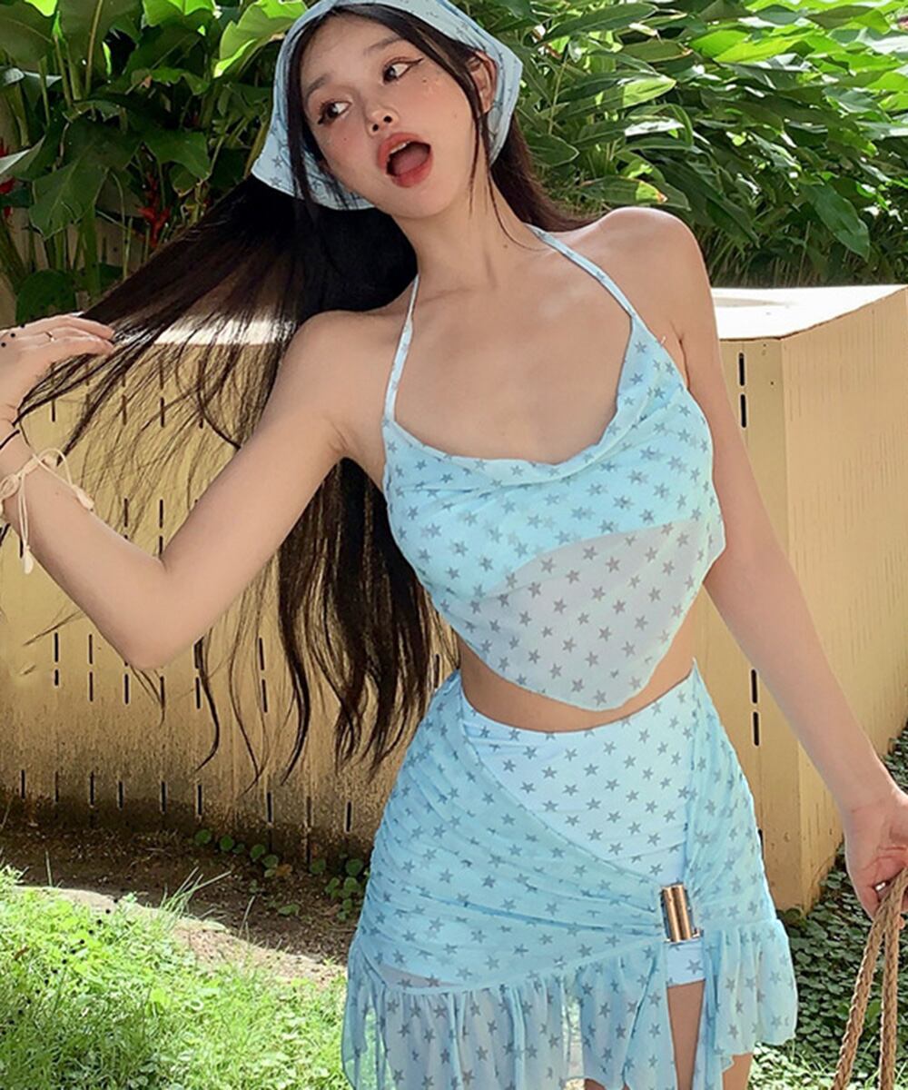 トレンド感あふれる韓国スタイルのセパレート水着3点セットが新登場。