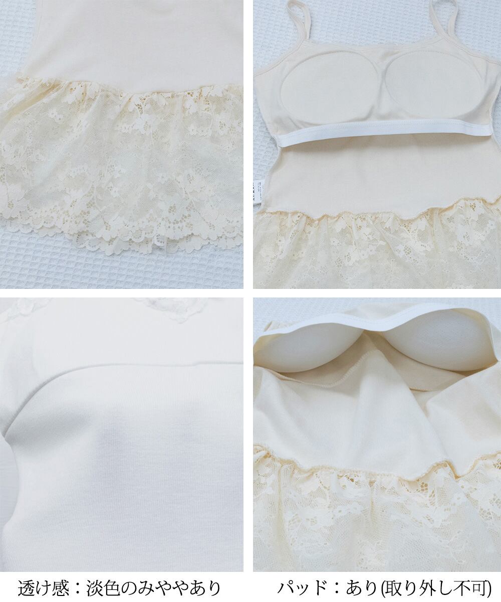 パッド付き 裾レース切り替えキャミソール