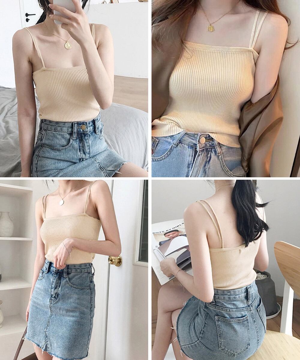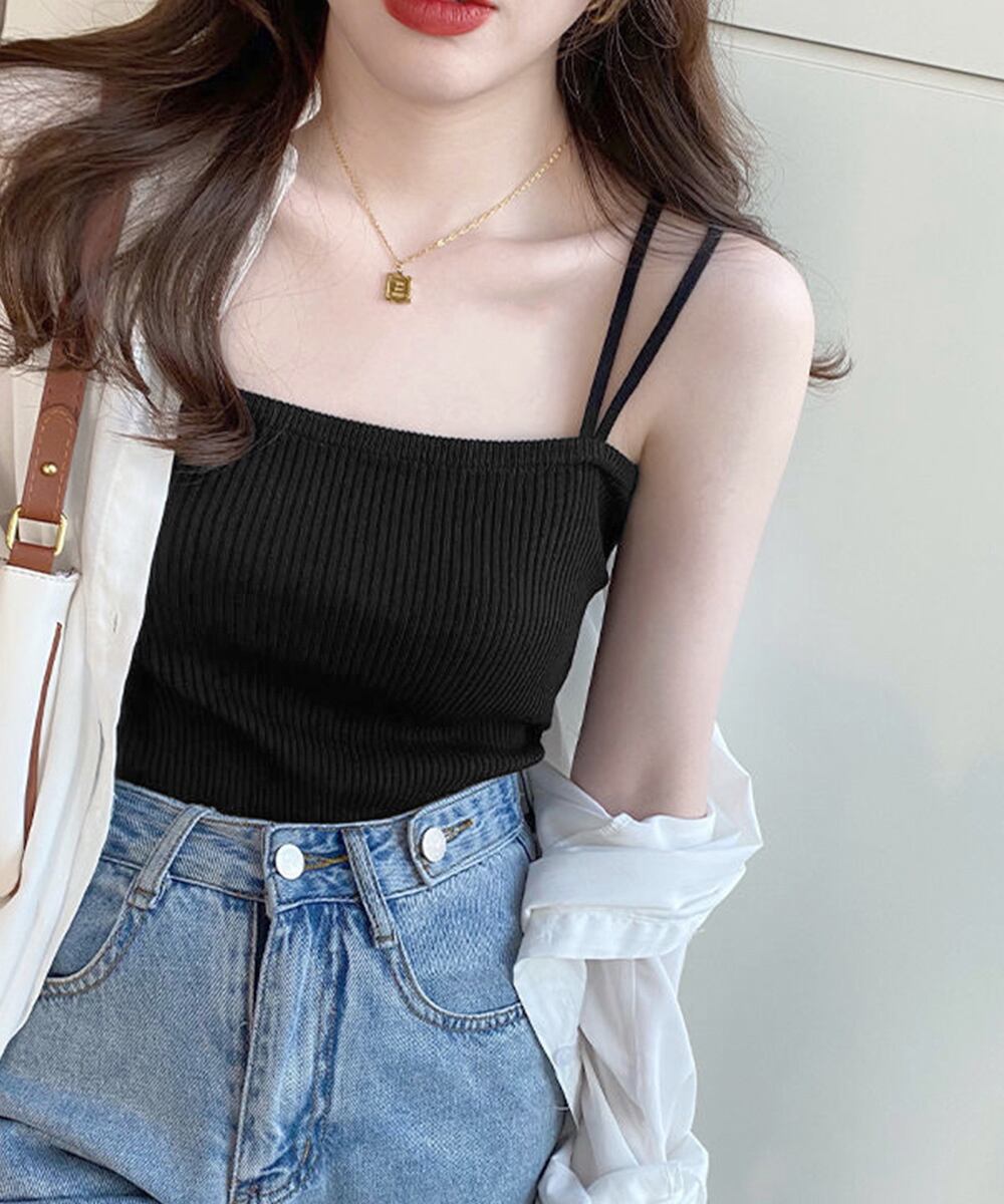 無駄のないシンプルなデザインが魅力のリブキャミソール