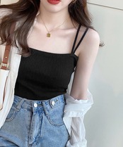 ノースリーブサマーニット レディース ベーシック 重ね着キャミトップ シンプル肌着 大人可愛い レイヤードインナー韓国風