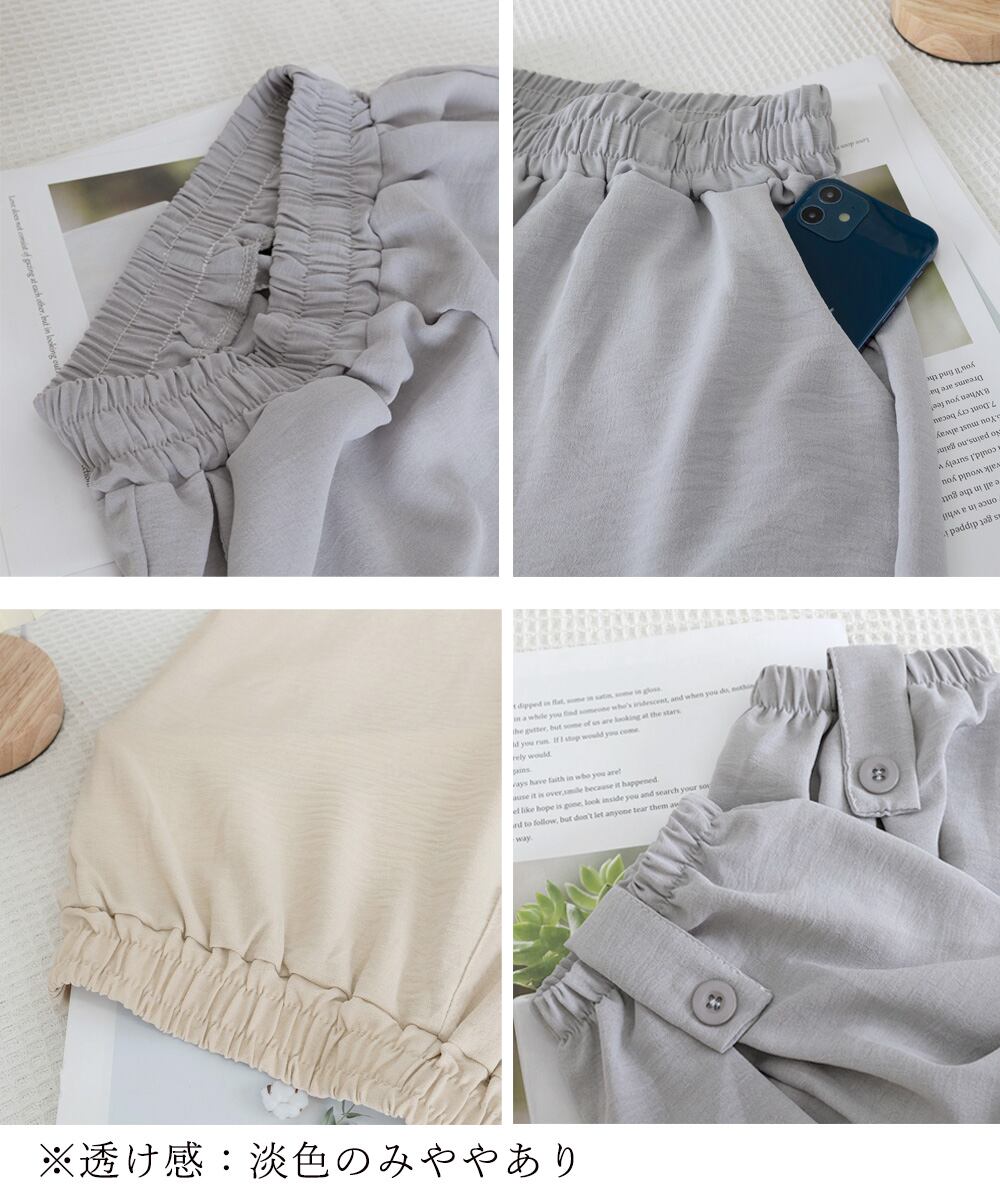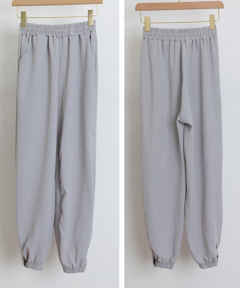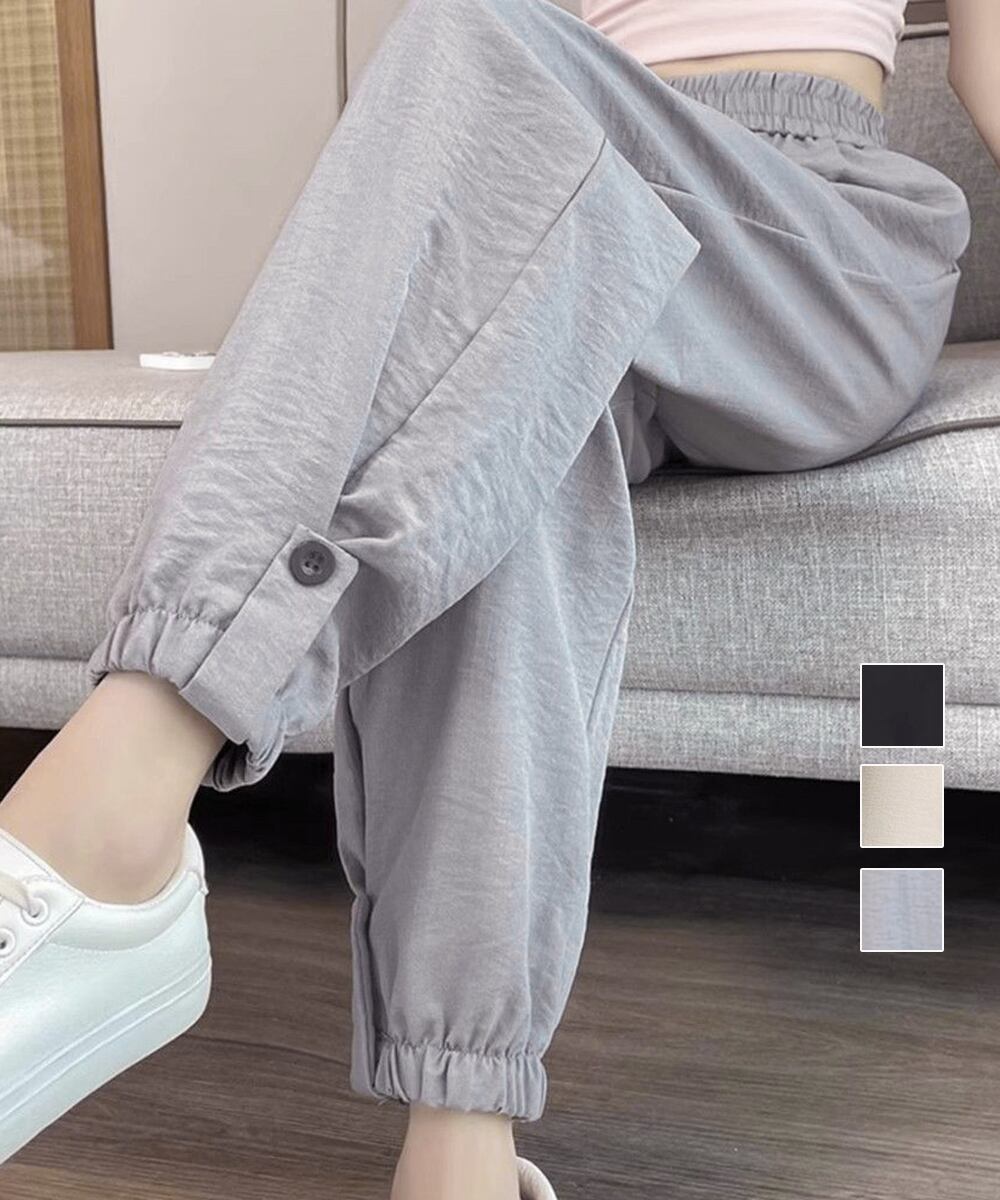イージーパンツ 韓国風 無地 レディースボトムス 九分丈 ゆったり 薄手 ポケット付き 着回し 裾ゴムパンツ カジュアル