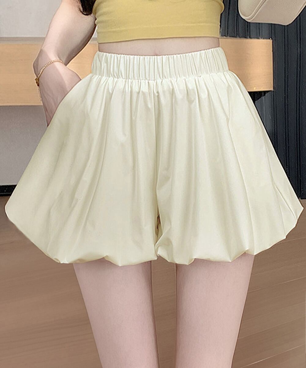 ハイウエスト ランタンパンツ 薄手 カボチャパンツ お洒落 ボトムス 涼しい かわいい 無地短パン 着やせ ウエストゴム