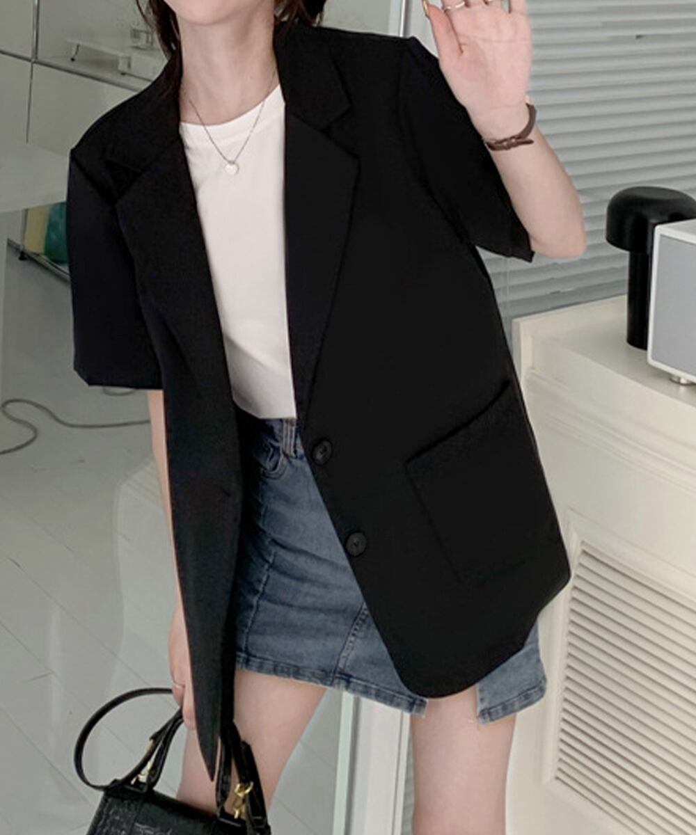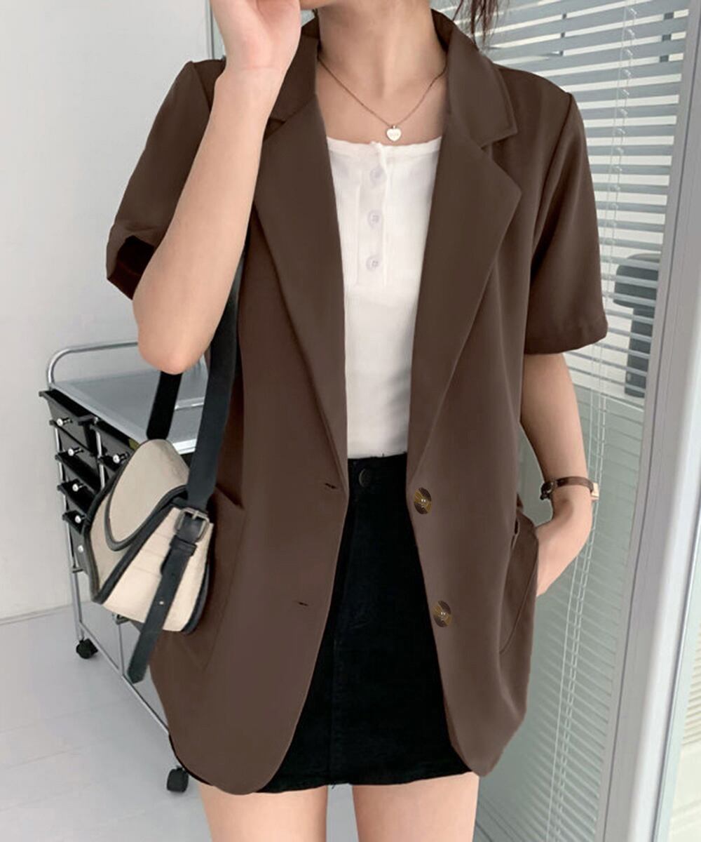 軽やかな素材感で春夏にぴったりの半袖テーラードジャケット