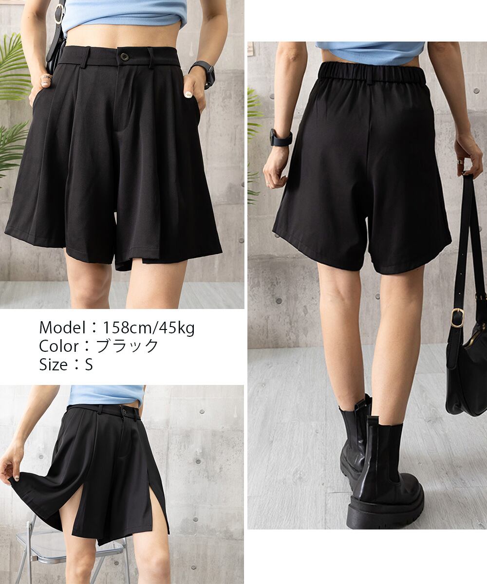 体型カバー ハーフパンツ着やせ プリーツショーパン 春夏きれいめ 通勤タックパンツ涼しい薄手キュロットパンツ バックゴム
