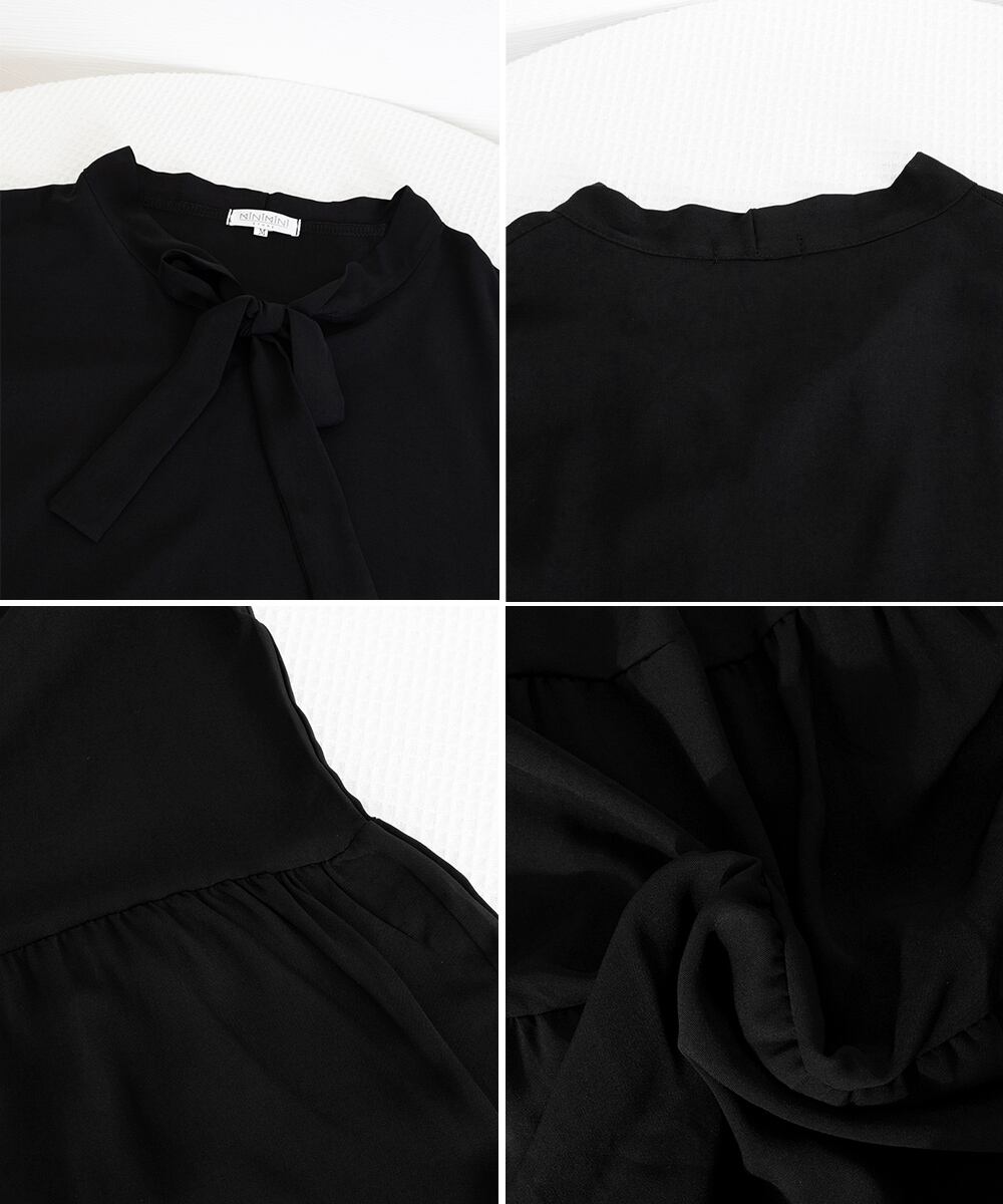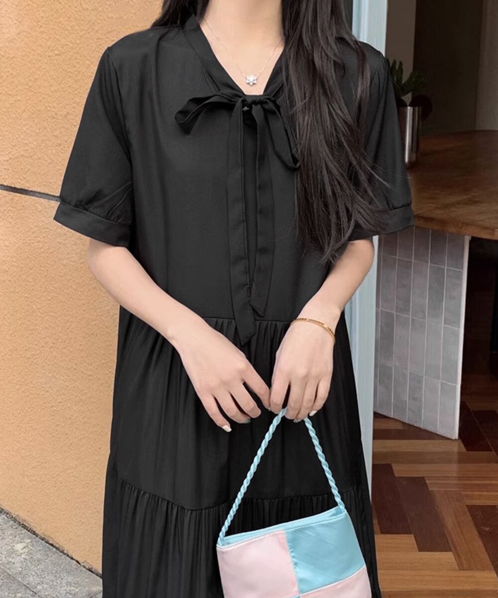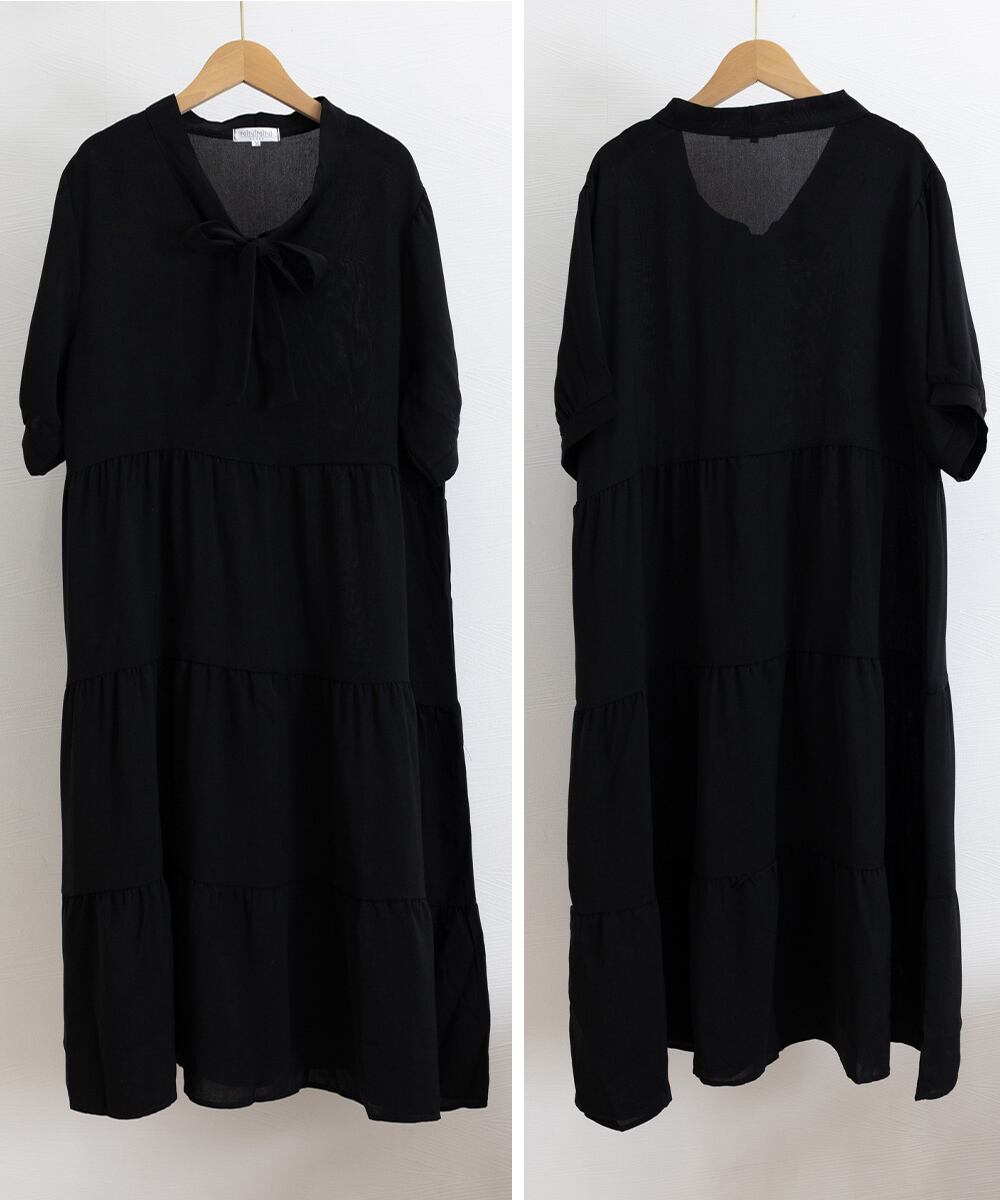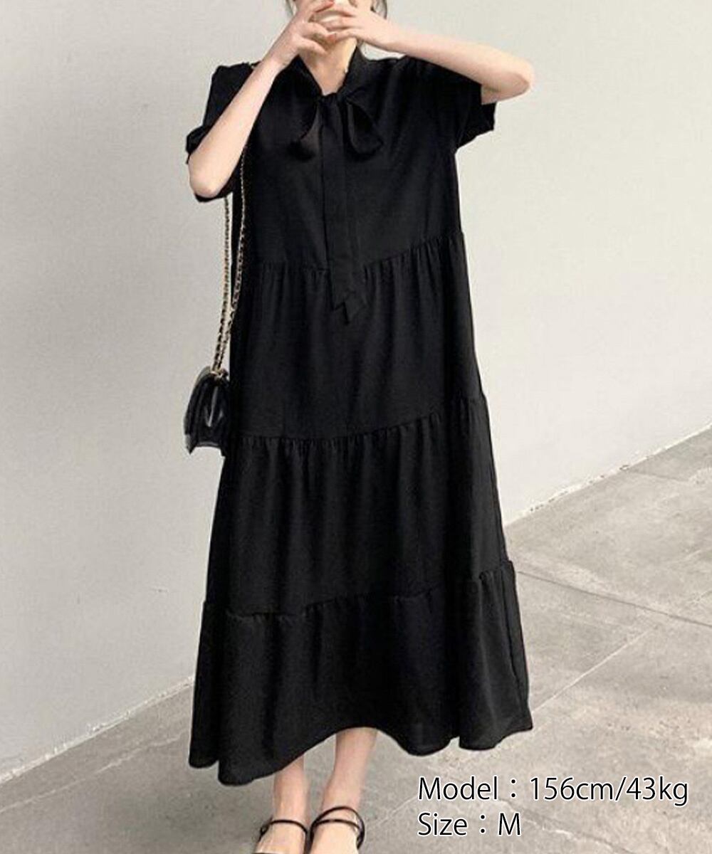 リボンタイ ティアードワンピースミモレ丈