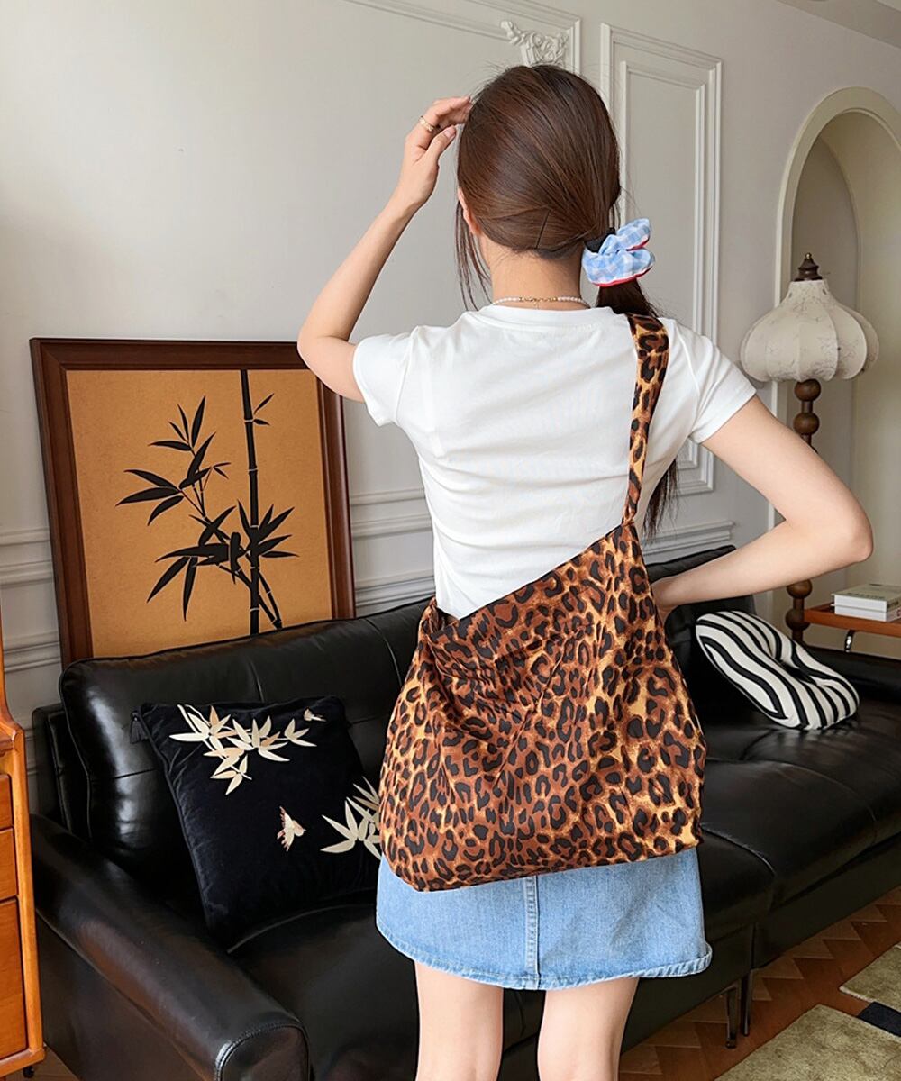 大容量 レオパード柄 ショルダーバッグ
