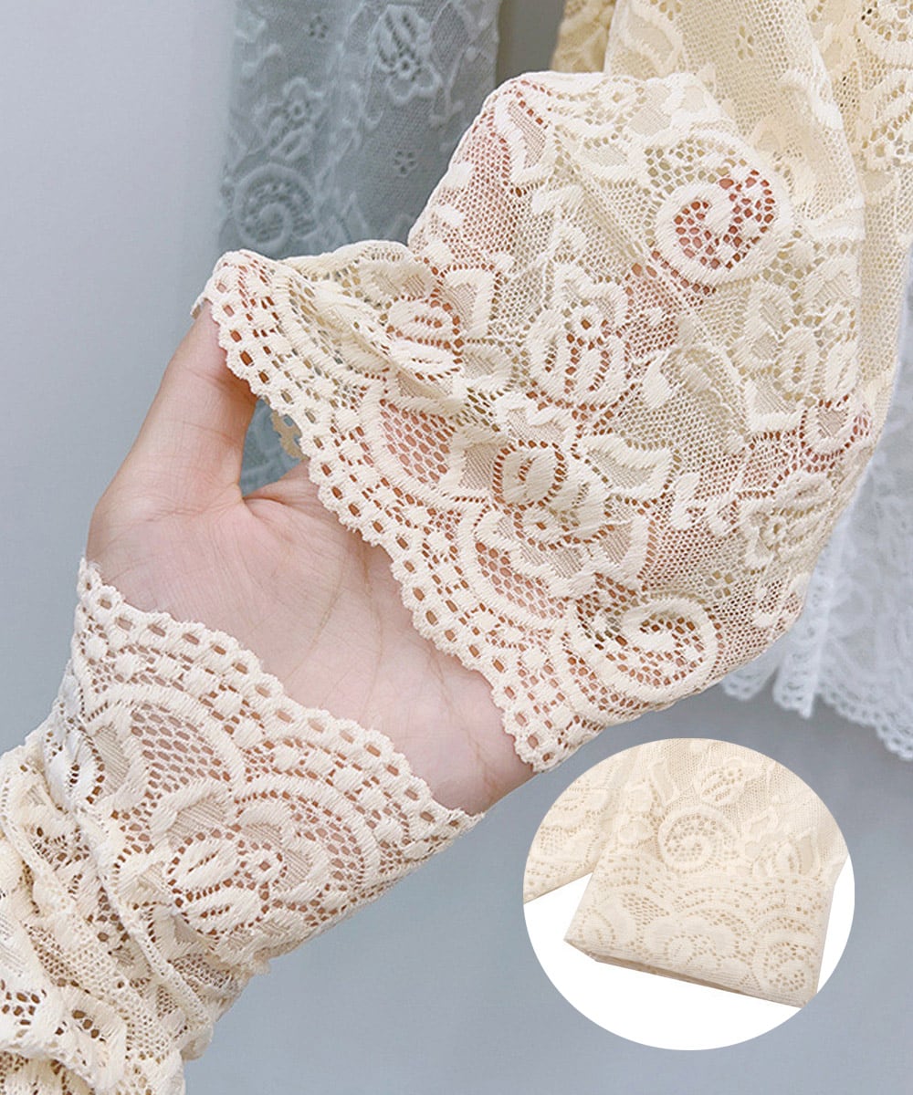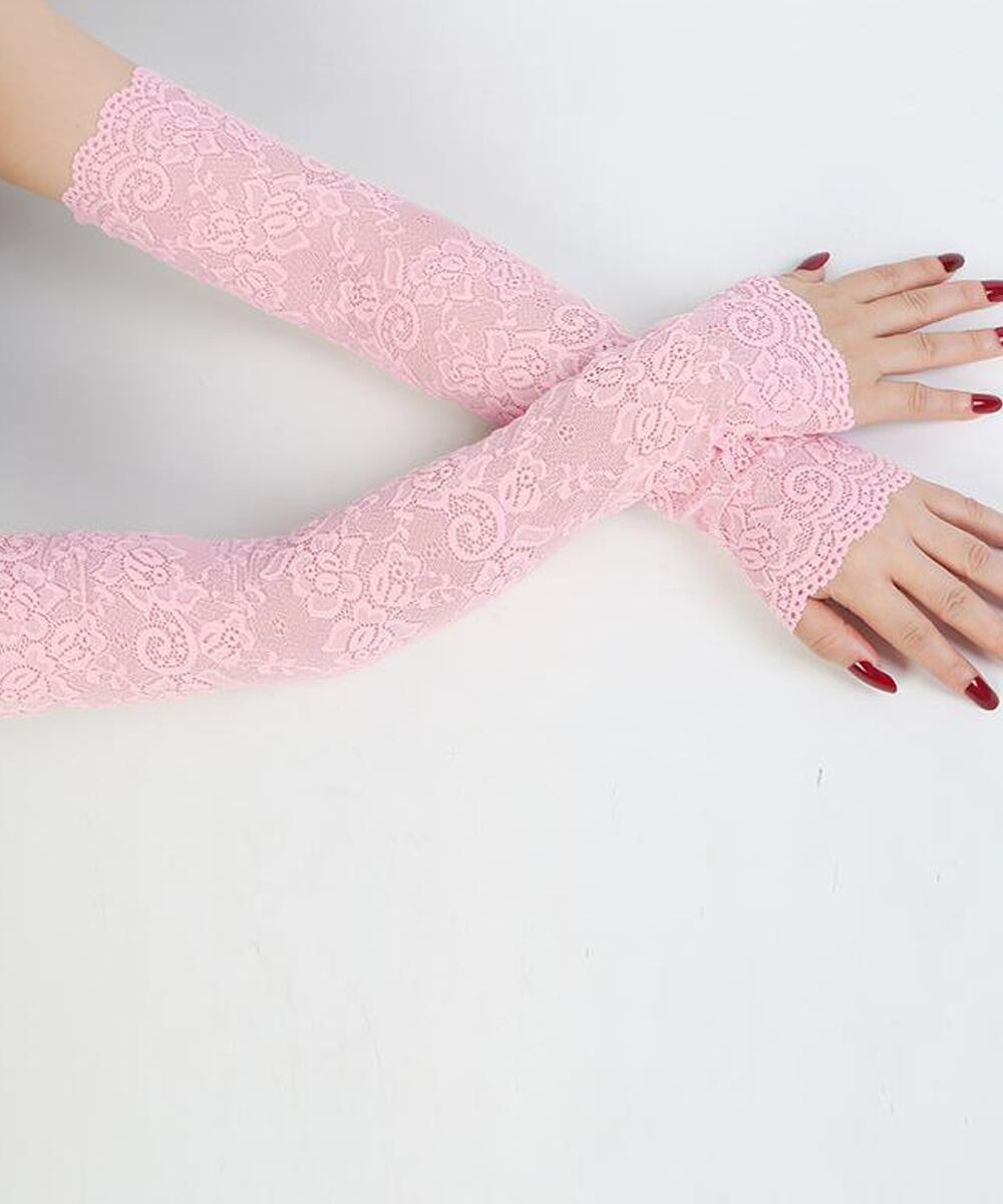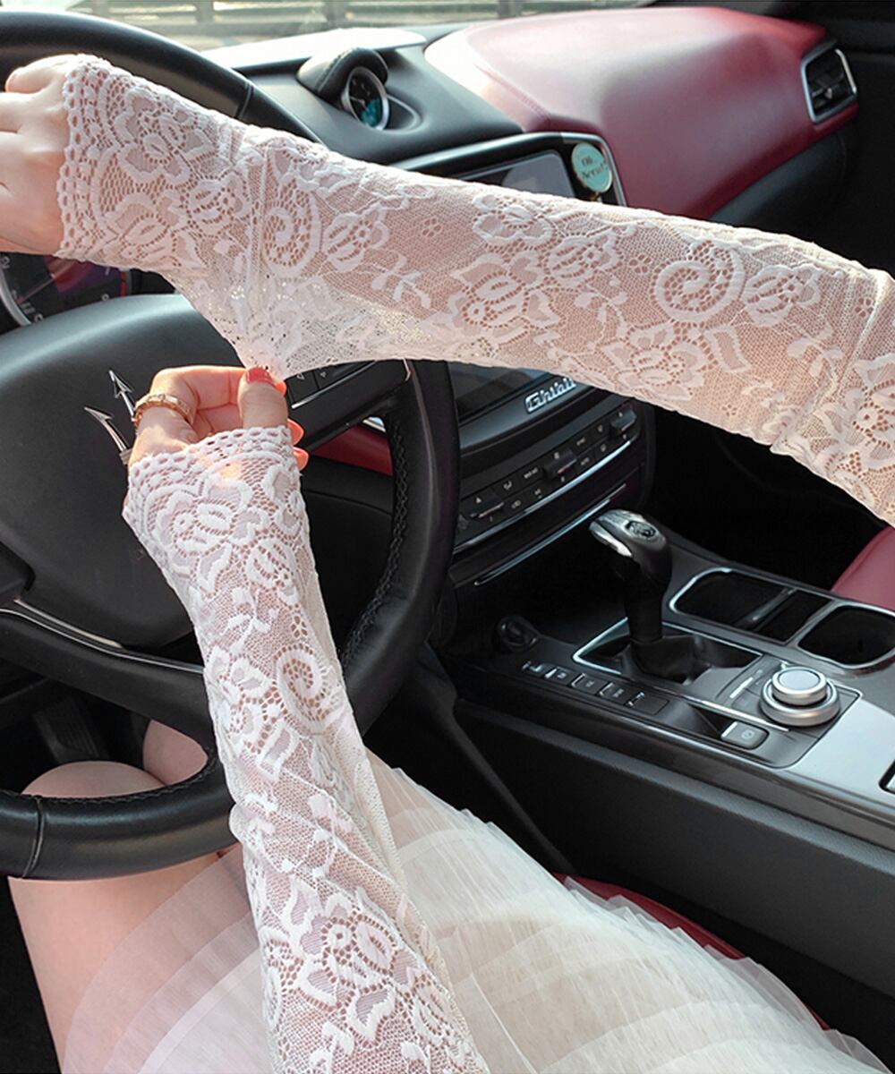 上品なフラワーレースが手元を華やかに彩る、UVケア対応のロングアームカバー