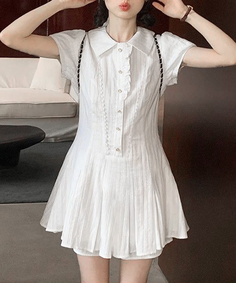 韓国ファッション夏 可愛いシャツワンピ デートワンピース白