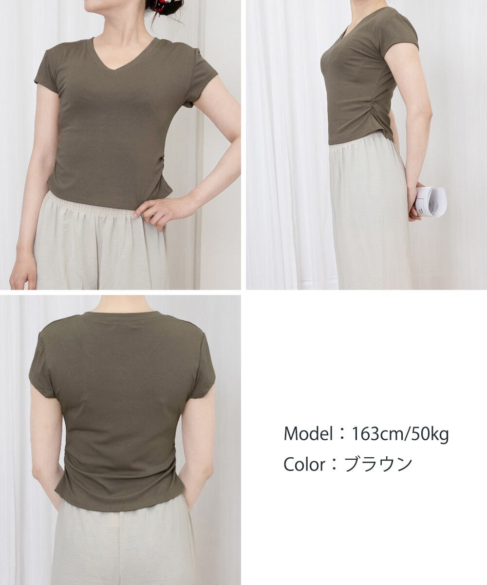 VネックTシャツ春夏 半袖カットソーレディース 着やせtシャツ大人可愛い カジュアルトップス タイトtシャツ細見えお洒落