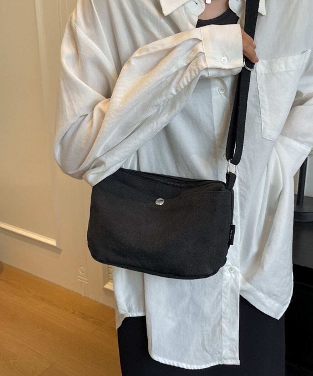 ちょっとしたお出かけにぴったりな、コンパクトサイズのキャンバスショルダーバッグ
