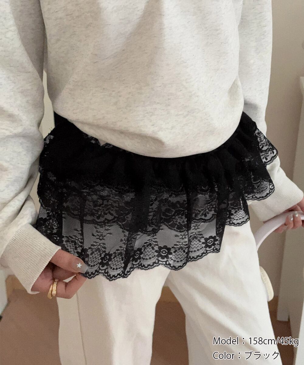 シーズンレス小物黒 フェミニン付け裾白 フリルヒップカバー