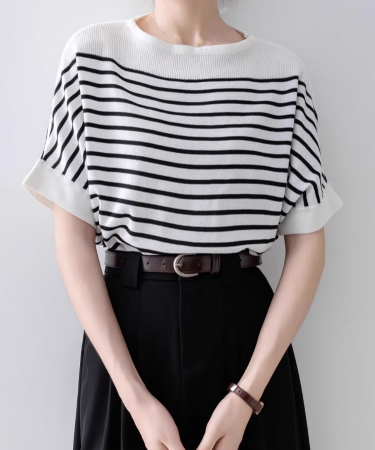 大人っぽいボーダー柄が魅力のサマーニットトップス