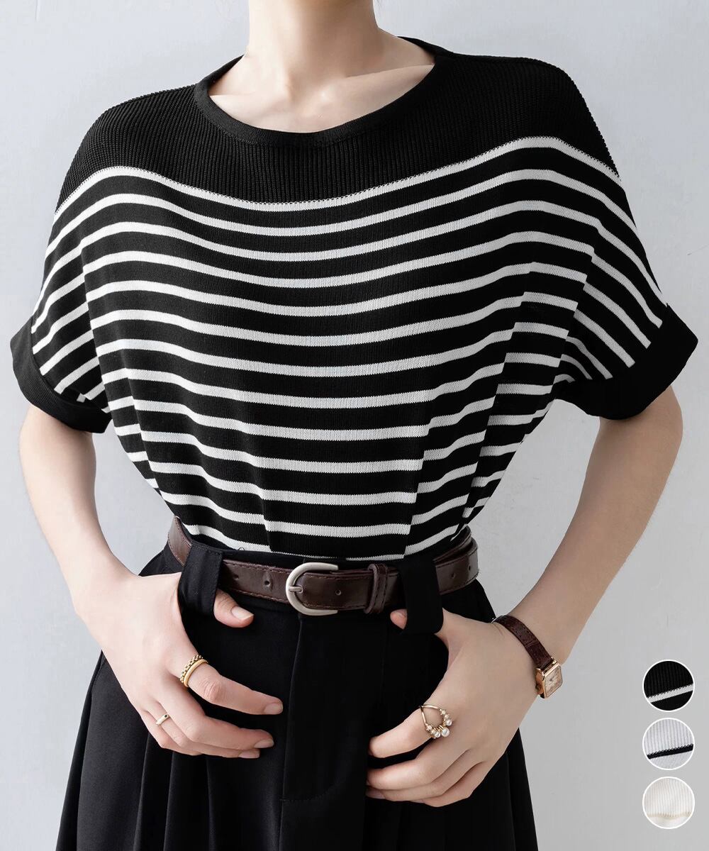 ボーダー柄サマーニット ドルマンスリーブ