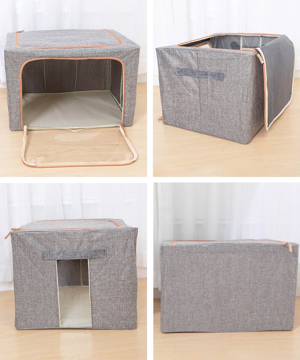 66Lの大容量で、大きな透明窓付きの折りたたみ式収納ボックス。