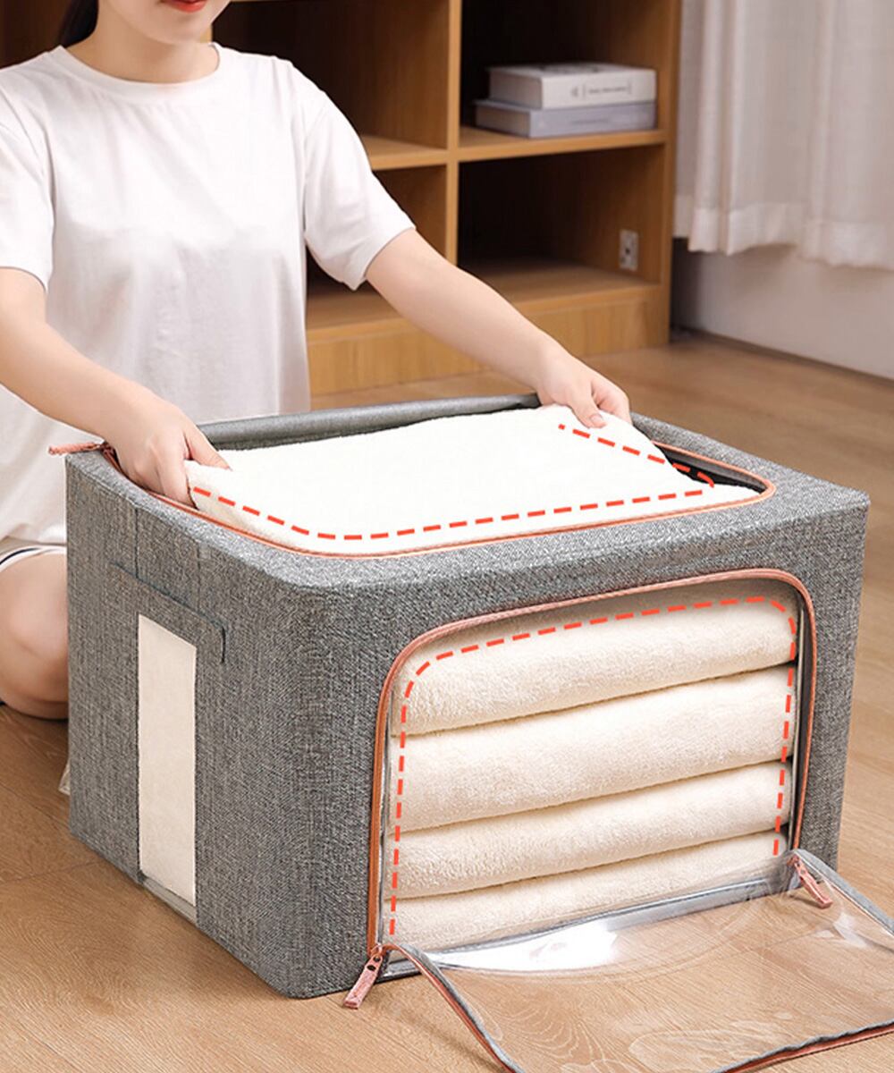 66L布団収納袋 立てられる 透明窓 洋服収納ボックス 省スペース 通気性 寝具収納ケース クロゼット収納 衣替え防塵袋
