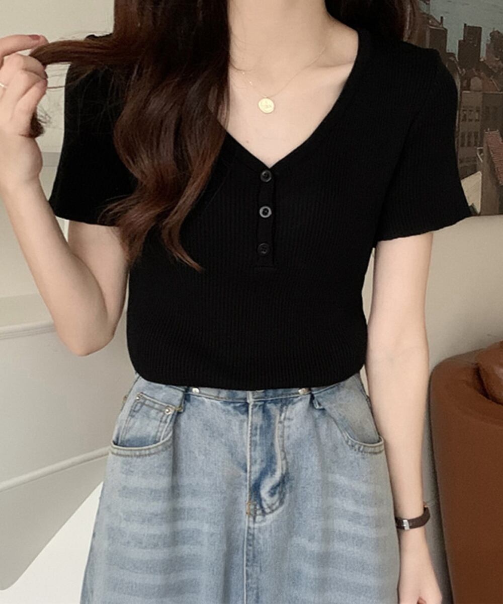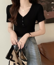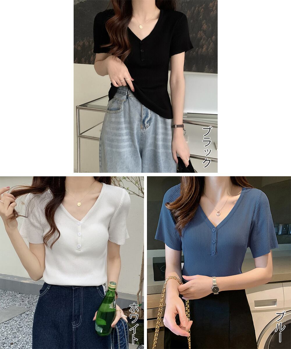 1枚でも重ね着でも着まわし上手な半袖リブニットトップスです