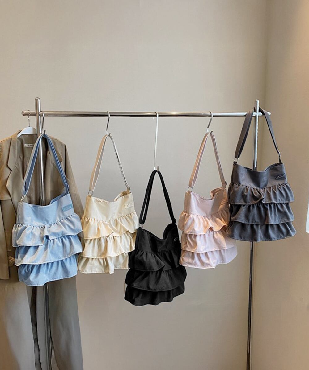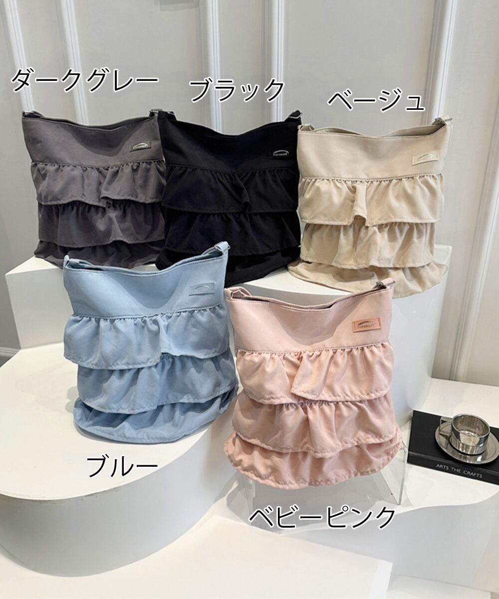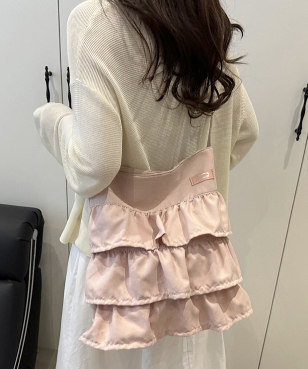 多層のフリルデザインがフェミニンな印象のショルダーバッグ。