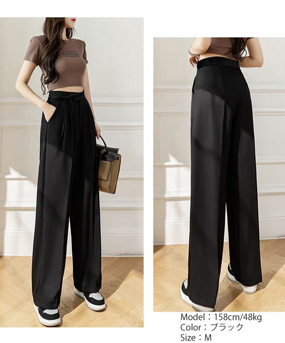 小柄さんにも嬉しいハイウエストリボンスラックス。