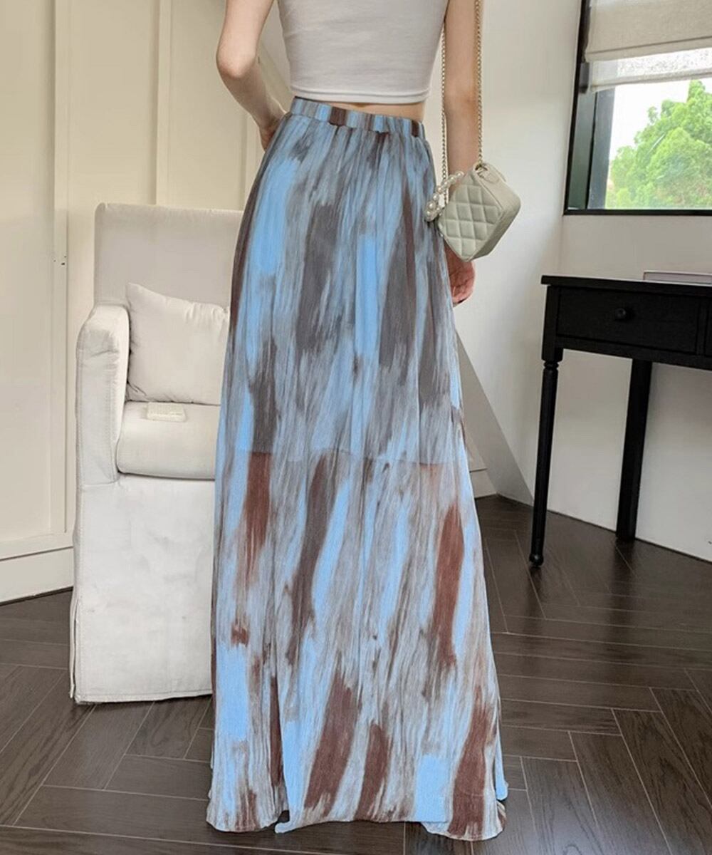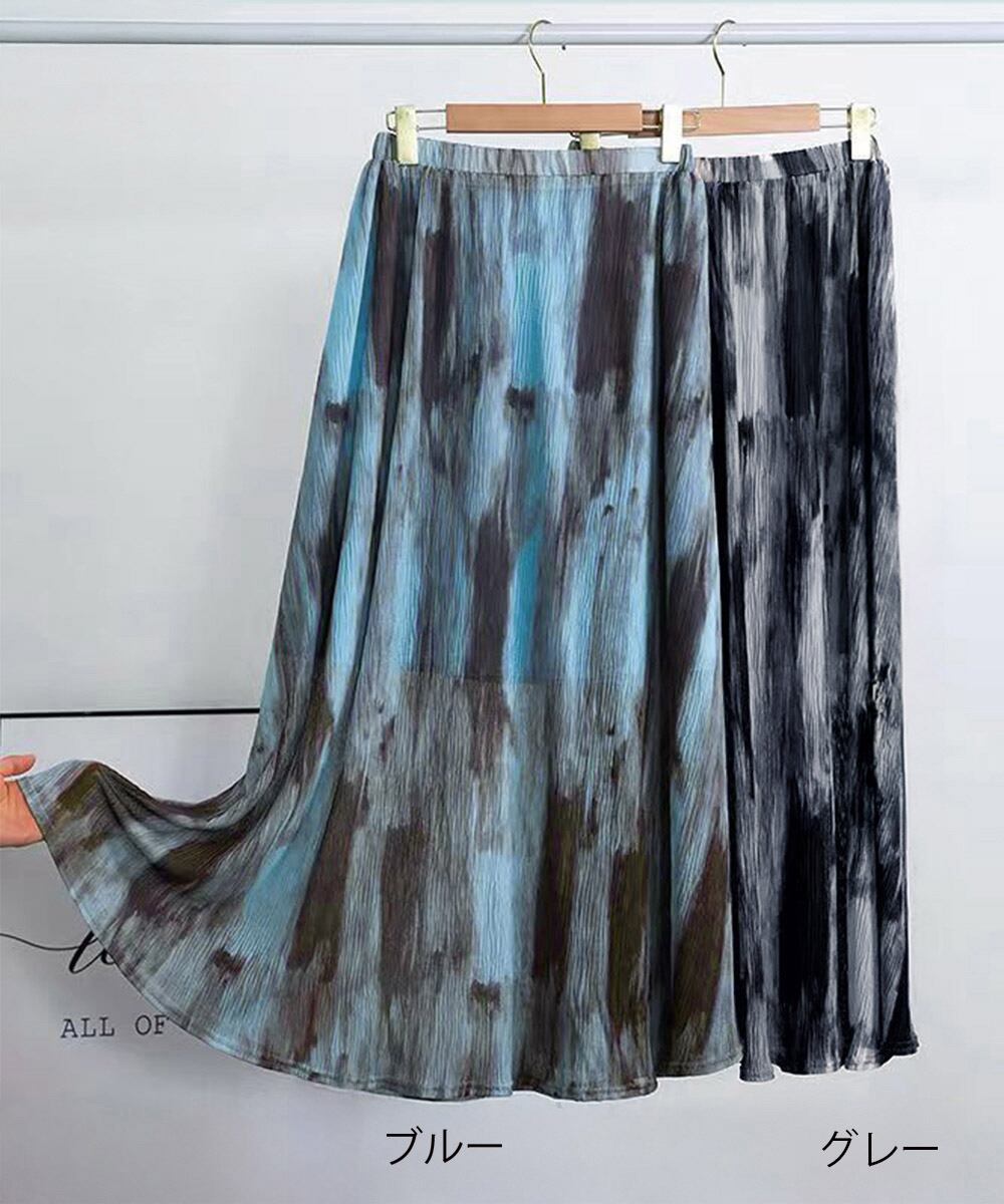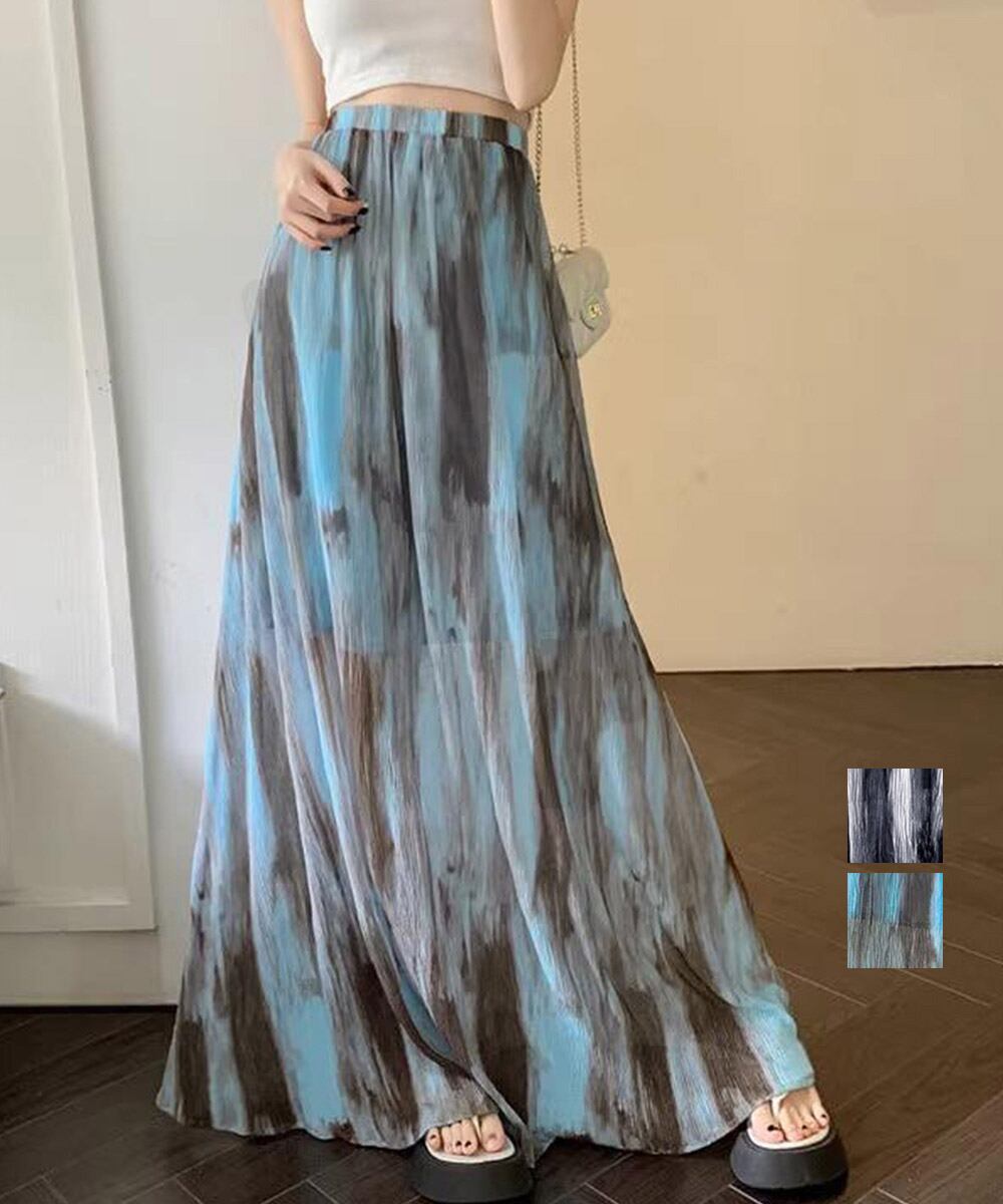 ぼかし柄フレアスカート レディース 大人可愛い ハイウエス ロングスカート 美脚脚長 おしゃれ リゾートスカートきれいめ