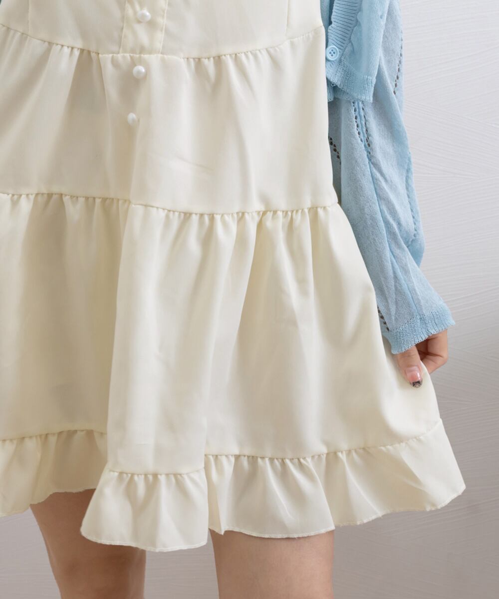 韓国風 大人可愛いティアードワンピース ウエストマーク Aライン フレアワンピースきれいめ ショートワンピ 旅行 着やせ