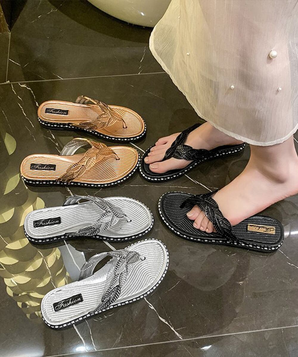 葉っぱモチーフがエレガントな夏用トングサンダル。