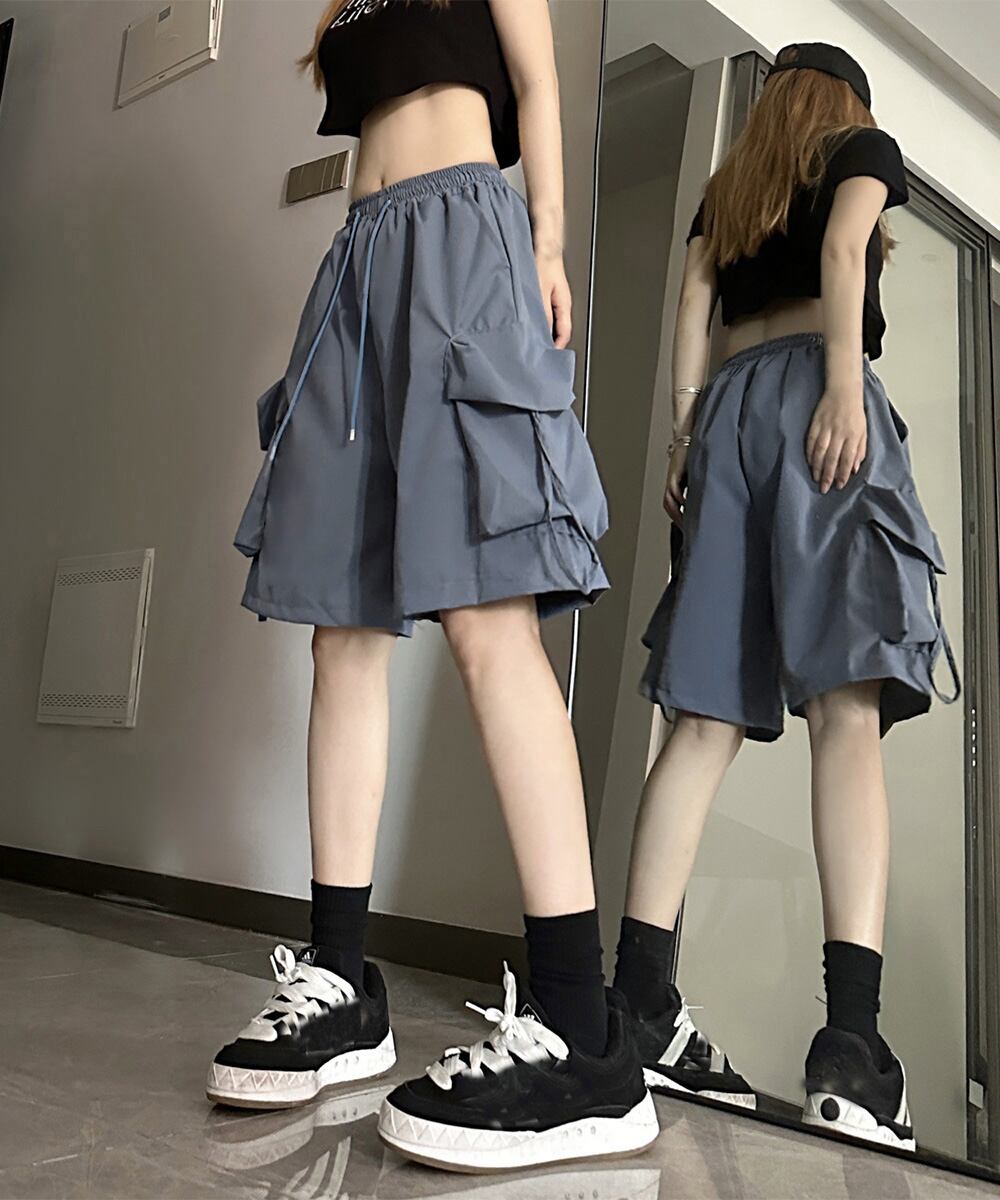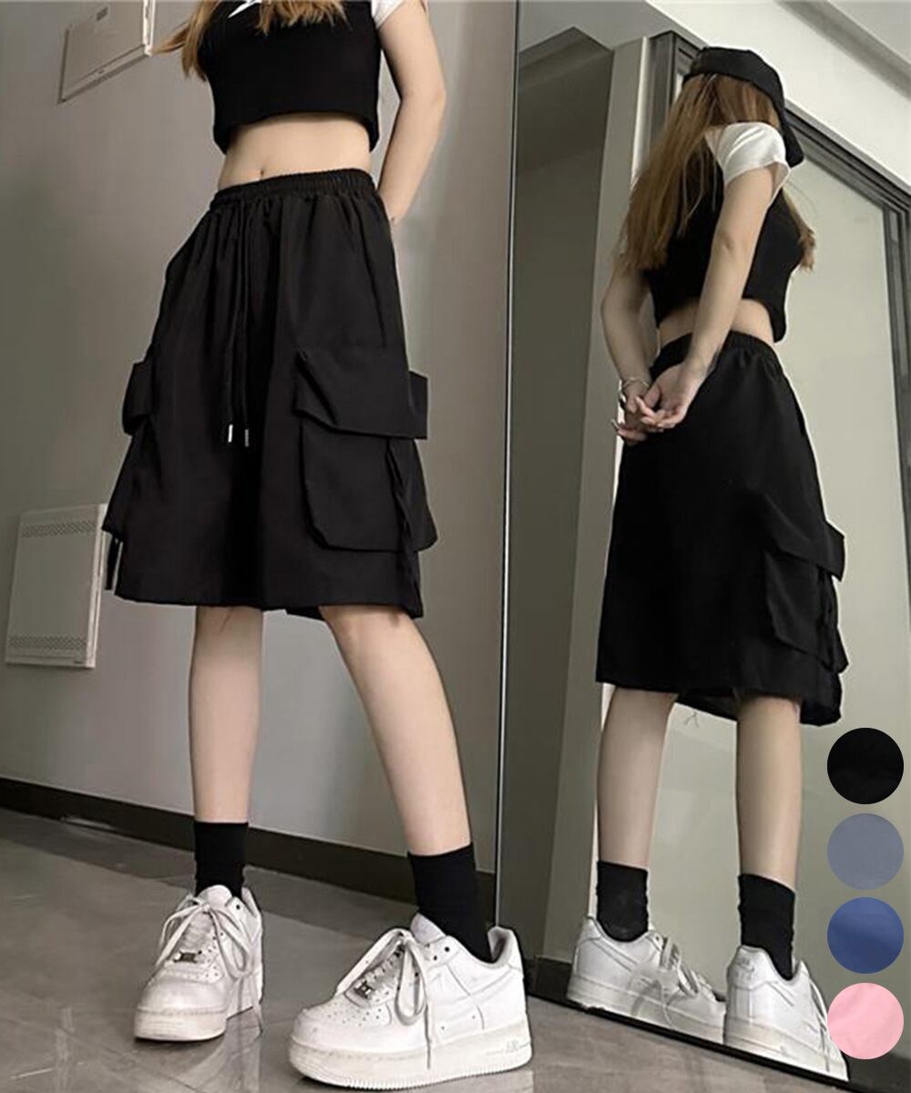 レディース ハイウエスト半ズボン ゆったり 薄手短パン ウエストゴムジョガーパンツ カジュアルイージーパンツ 体型カバー