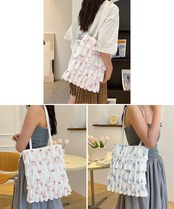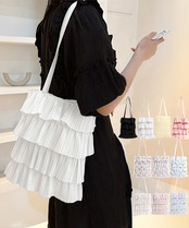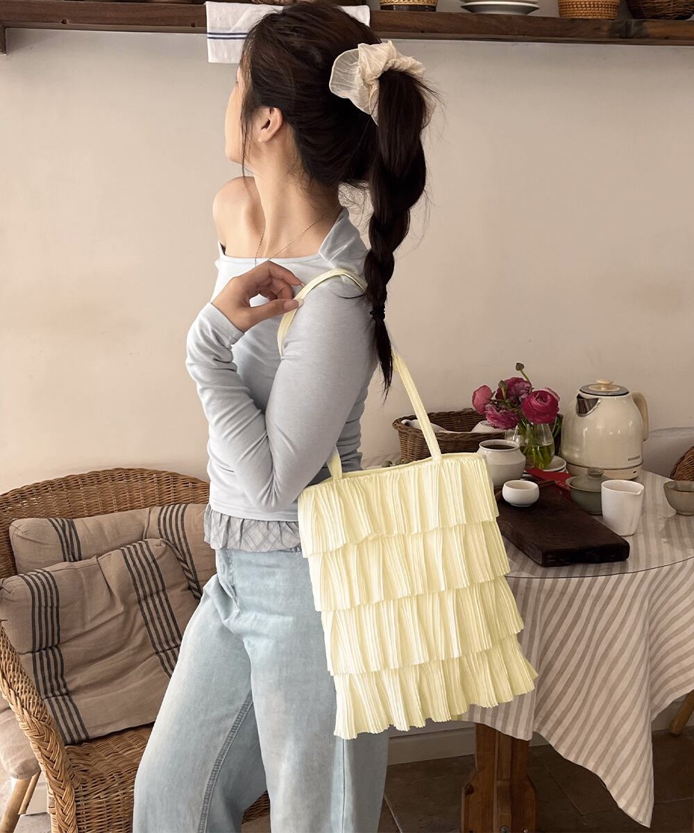 華やかなフリルが目を引くプリーツデザイントートバッグ。