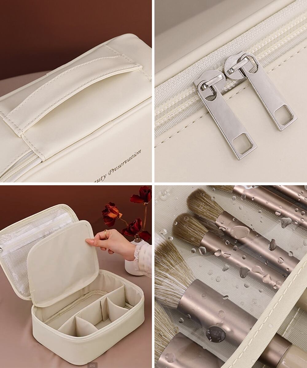 ブラシホルダーとメッシュポケットを備えた実用的な内部設計。