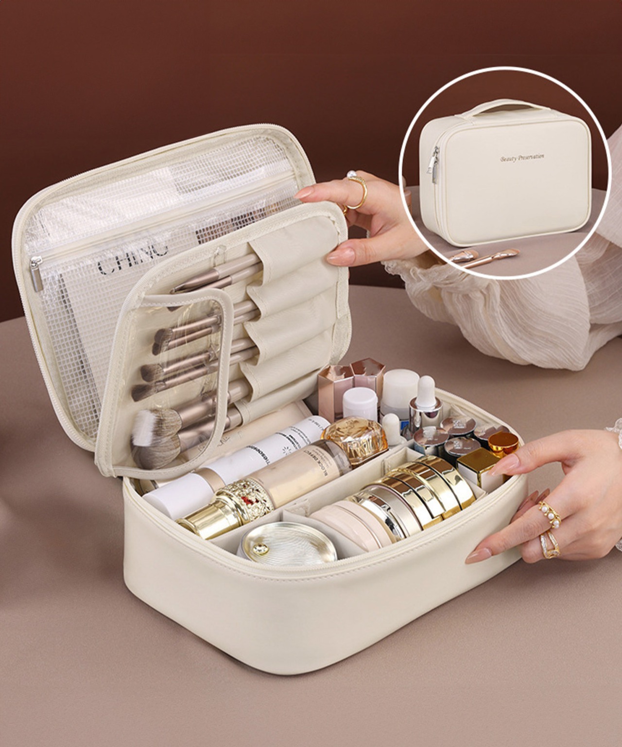 大容量で化粧品やスキンケアアイテムをスッキリ収納できる。